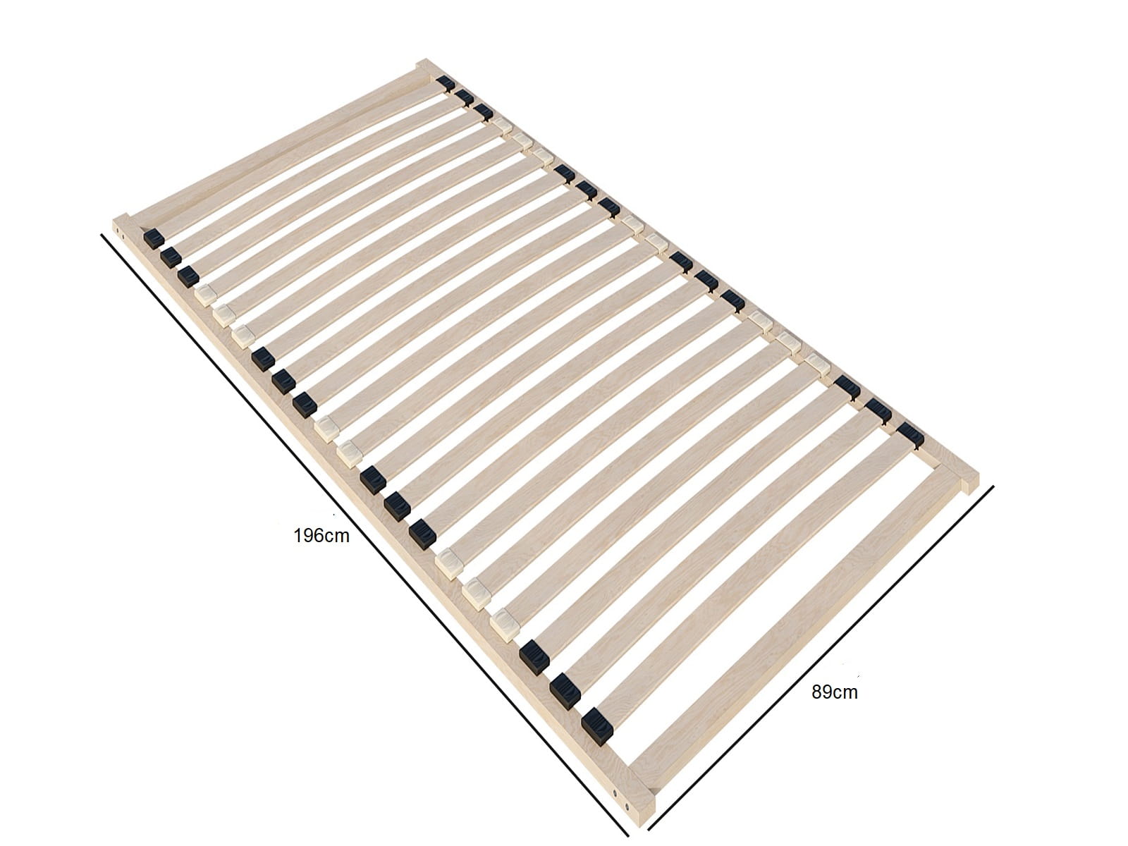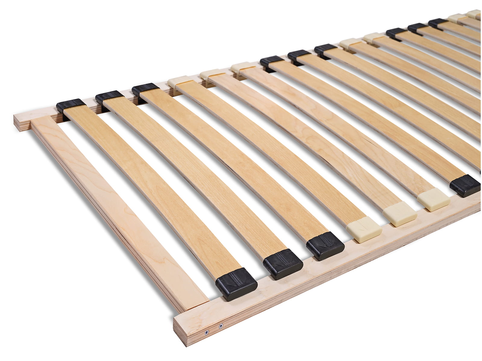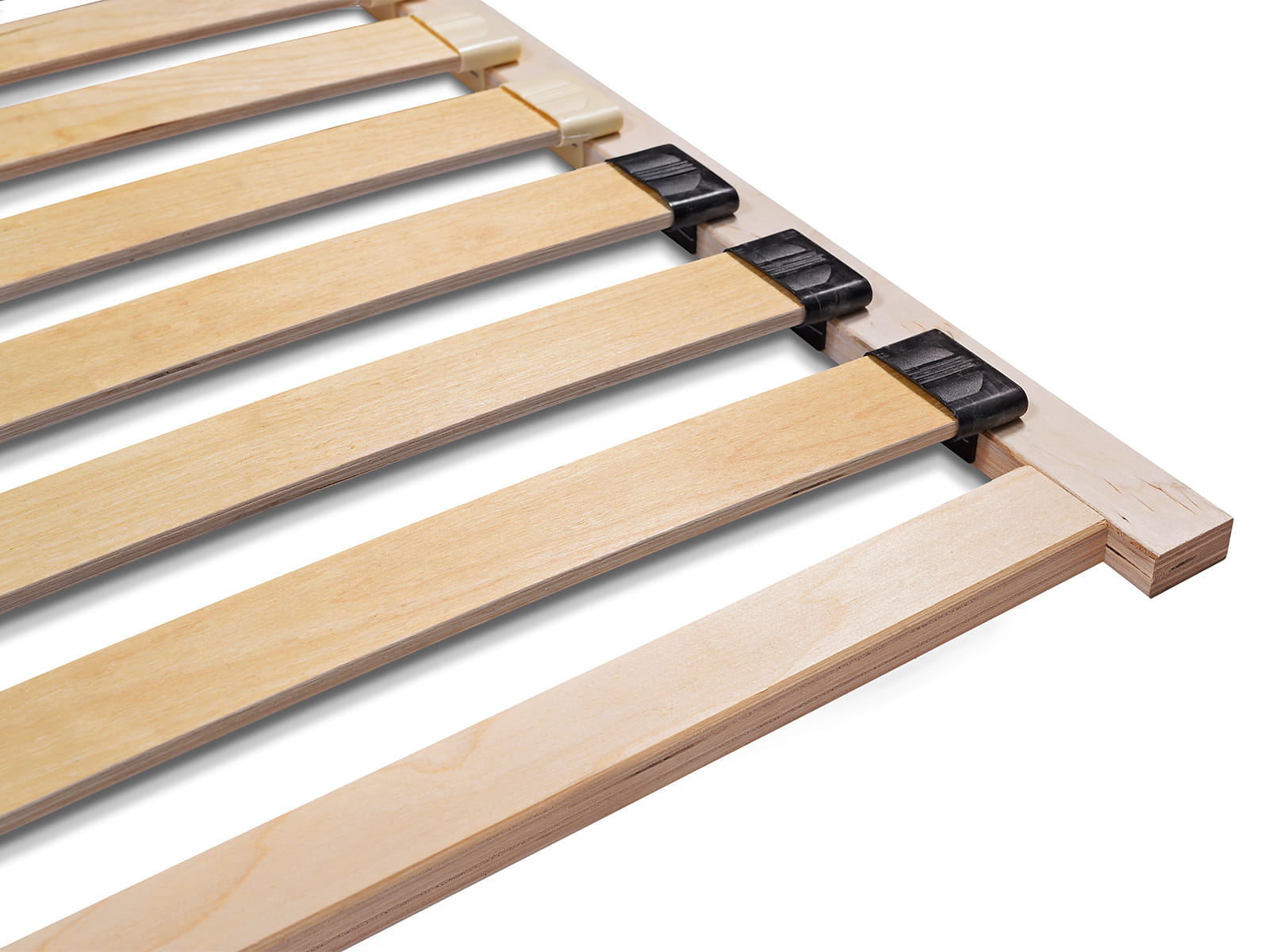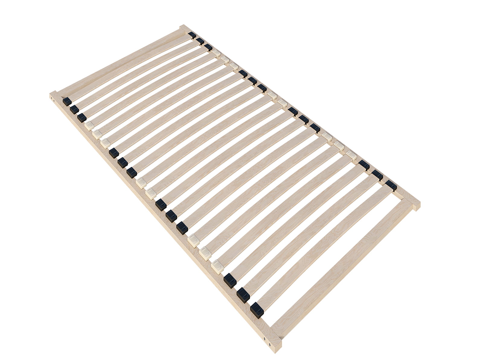 | Jednolůžkový rošt 90x200 pro vlastní montáž s pásem pro optimální nastavení lamel roštu. Rošt je určen pro všechny typy matrací. 20 břízových pružinových lamel uložených na bočním rámu v esteticky odolných držácích upevněných sponami. Výška bočního roštu je 3,5 cm, rozteč mezi lamelami je přibližně 1,5 cm. Výška bočního roštu je 3,5 cm. Skutečná délka navrhovaných roštů je o 4 cm kratší a pro standardní délku 200 cm - 196 cm. Skutečná šířka je užší asi o 1 cm. Rošt je určen k vlastní montáži a je dodáván v balení s návodem