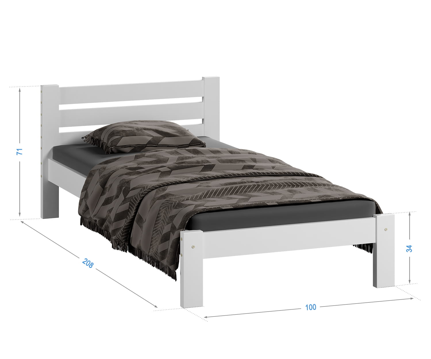 | 1. Rám vyrobený z přírodního borovicového dřeva. 2. Rošt z 13 odolných pružinových lišt z vrstveného březového dřeva. 3. Hladký povrch dřeva získaný pečlivým broušením, leštěním a lakováním. 4. Montážní sadu + klíč 5. Návod k montáži. 6. Pojištění zásilky.