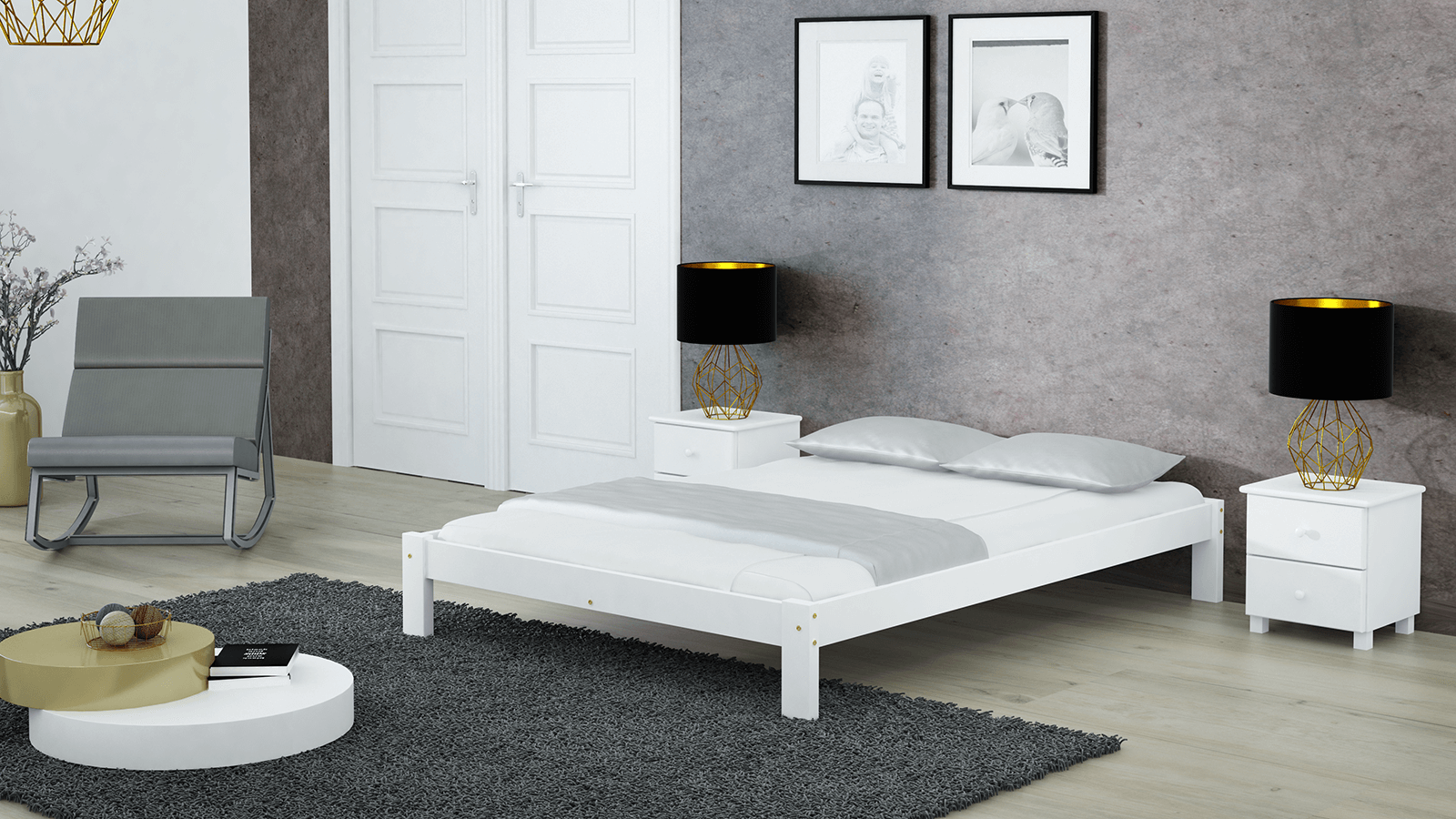 Postel z masivu 140x200 Luisa bílá s roštem