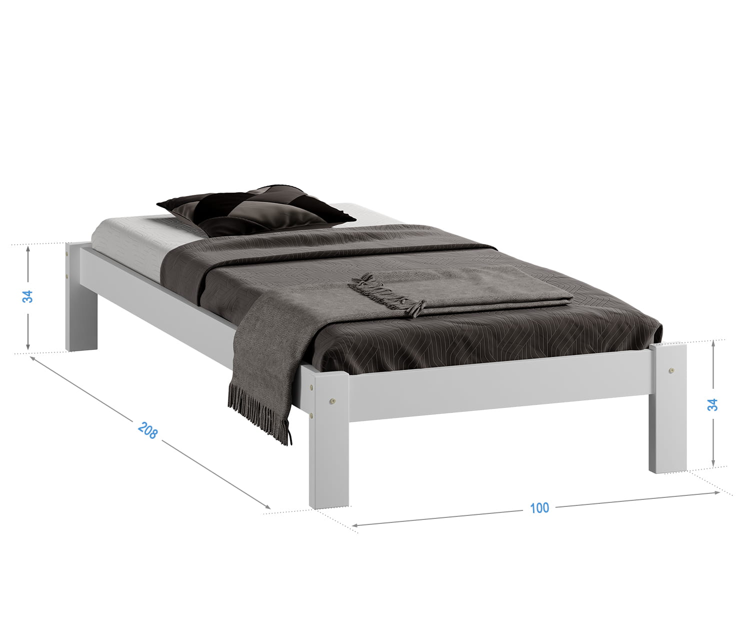 | 1. Rám vyrobený z přírodního borovicového dřeva. 2. Rošt z 13 odolných pružinových lišt z vrstveného březového dřeva. 3. Hladký povrch dřeva získaný pečlivým broušením, leštěním a lakováním. 4. Montážní sadu + klíč 5. Návod k montáži. 6. Pojištění zásilky.