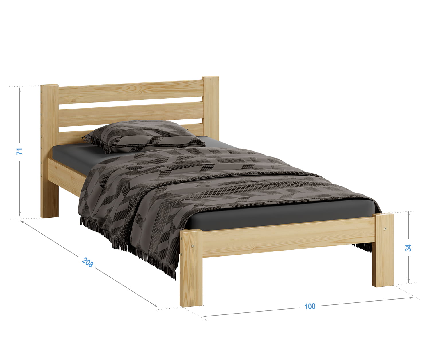 Postel z masivu 90x200 Ajza borovice s roštem