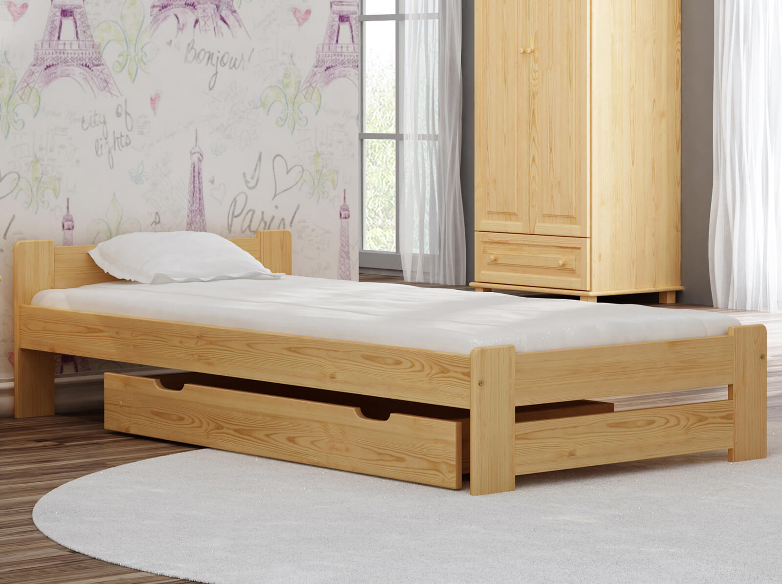 Postel z masivu 90x200 Euro borovice s roštem