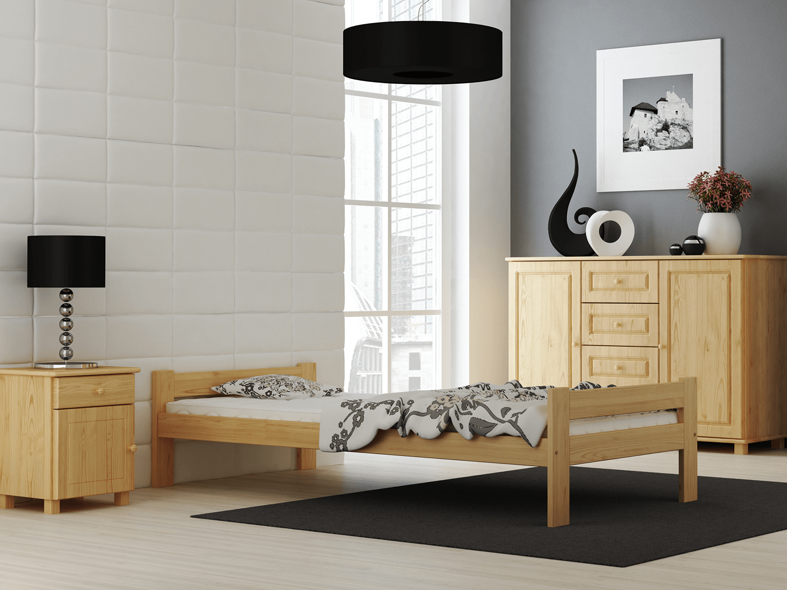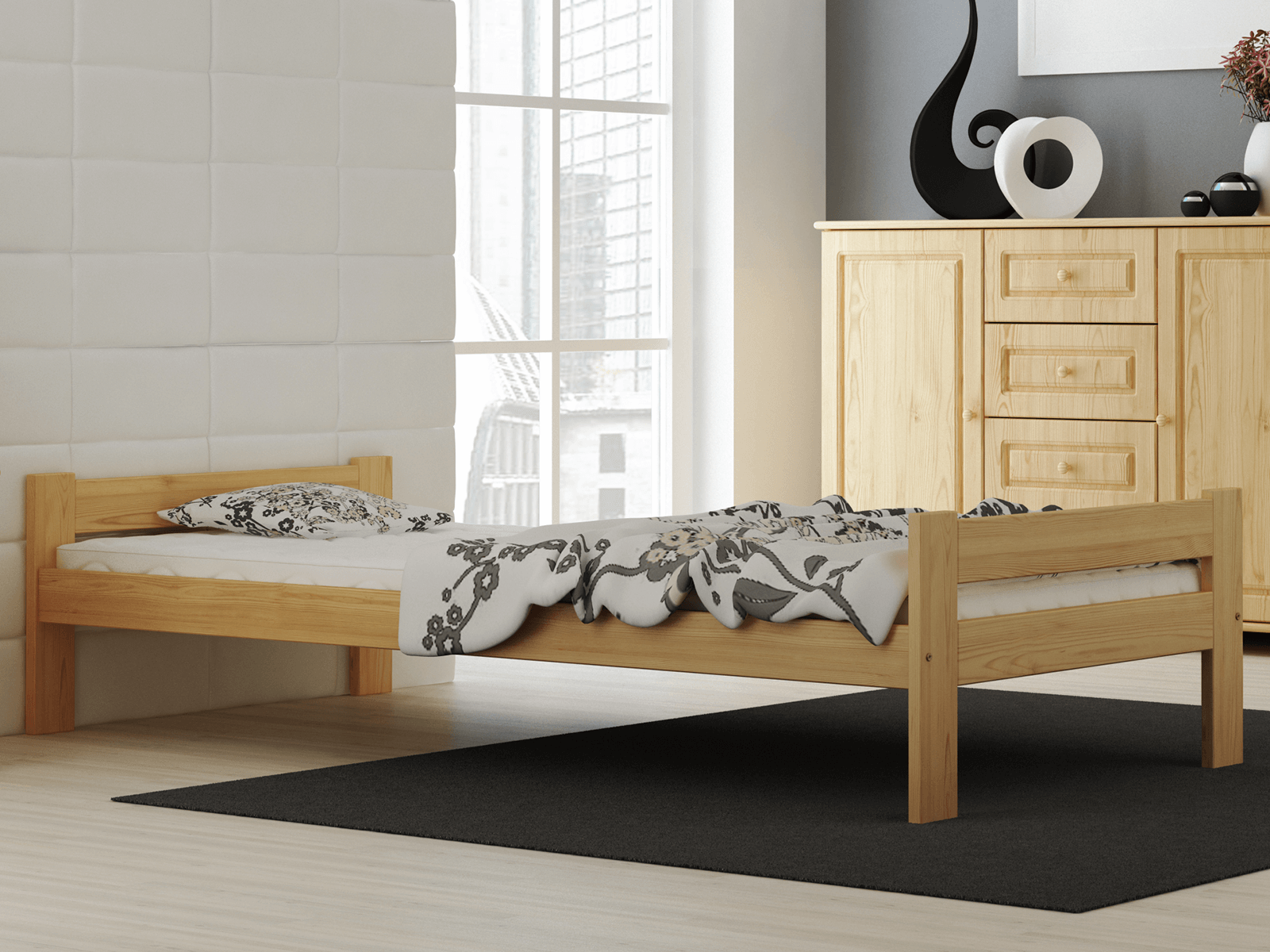 | Ekologická postel Fumi + rošt + matrace Kassandra Postel Fumi Řada VitBed kombinuje moderní vzhled, snadné použití, pevnost a všechny požadované vlastnosti produktů vyrobených v 100% z přírodní suroviny, borovicového dřeva. Model Fumi je charakteristický lehkou konstrukcí, přírodním dřevem a atraktivní cenou. Spoje byly provedeny naší firmou pomocí využití systému spojování Pro-Setup. Naše postele jsou lakovány ekologickými laky s atesty Národního ústavu hygieny. Nábytek je od základu vyroben naší firmou. Pro systém šroubení je námi použita metoda spojování Pro-Setup. Spojení pomocí 2 stabilizačních kolíků a mimostřední sady zaručují vysokou stabilitu. Sada obsahuje pružný rošt, vyrobený z 12 lamel z břízového dřeva spojených látkovou páskou. Tento nábytek je vyroben z borovicového dřeva nejvyšší kvality s 3 krát prováděným nátěrem ekologickými barvami. Jako jedni z mála používáme pro lakování nátěrové hmoty s atestem Národního ústavu hygieny. Naše laky mají povolení užívání na předměty, s nimiž přicházejí do kontaktu děti. (soulad s normou DIN EN 71, cz. 3). Tento výrobek je dodáván v balení pro samostatnou montáž.