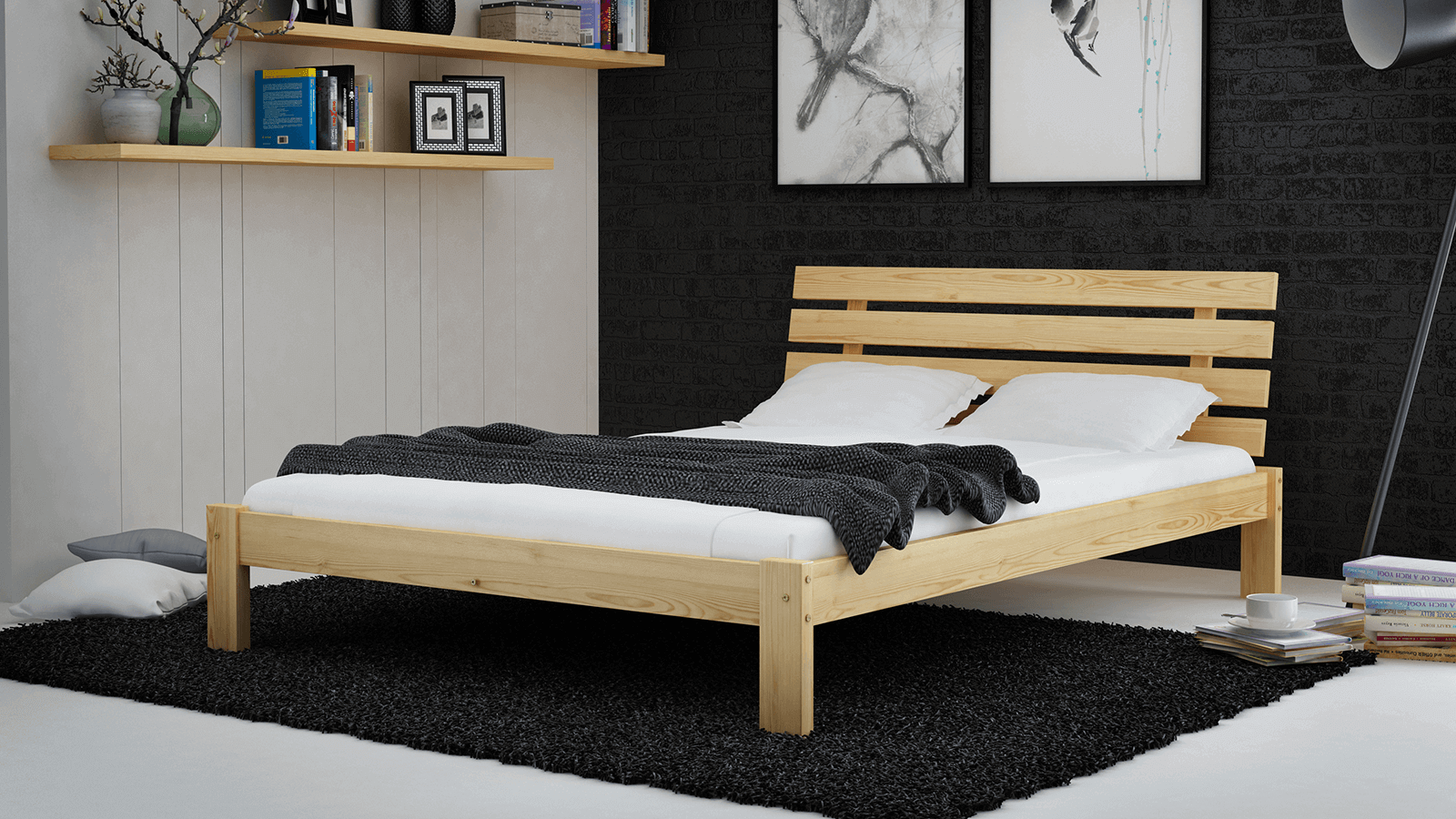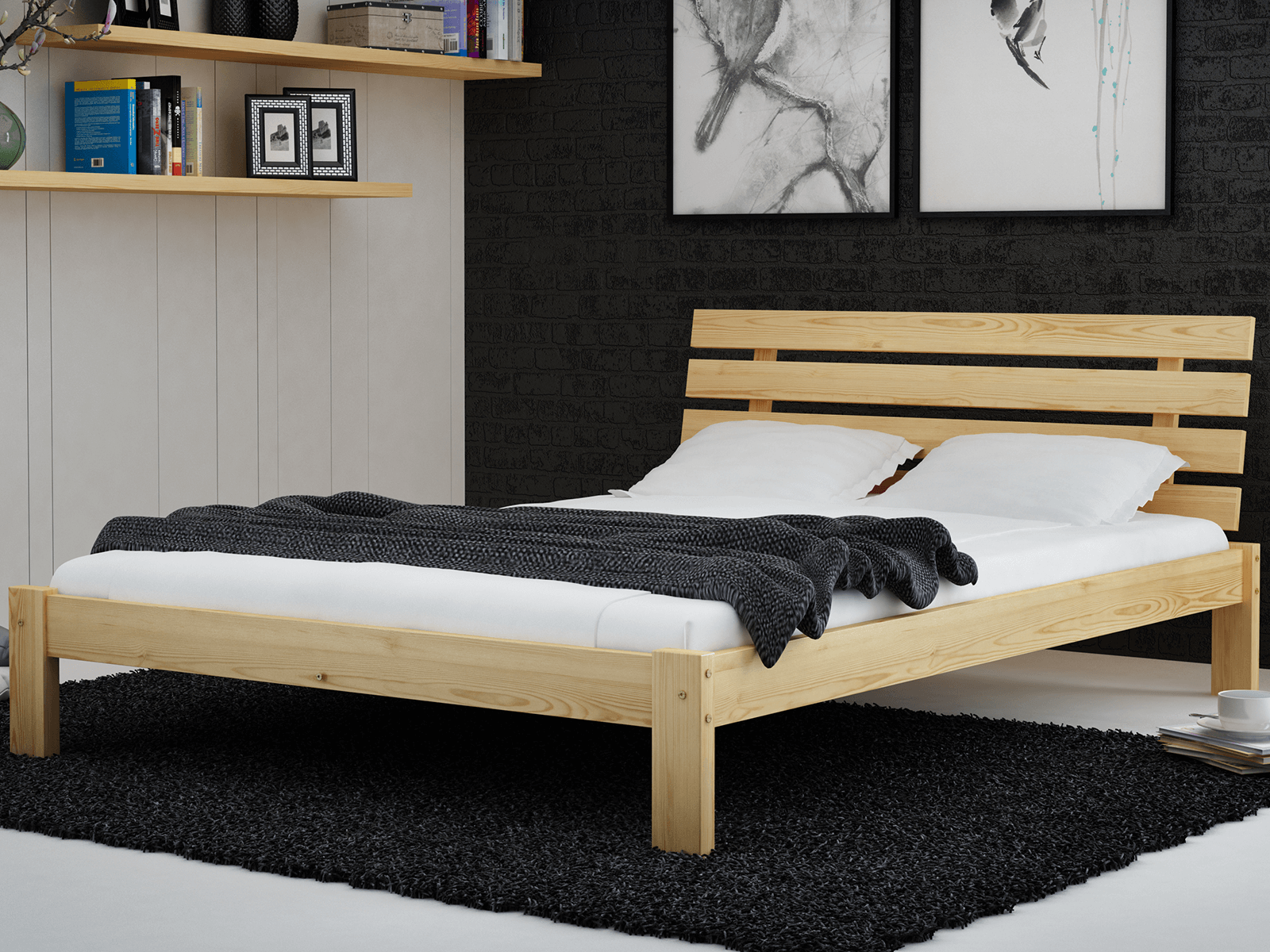Postel z masivu 140x200 Karla borovice s roštem