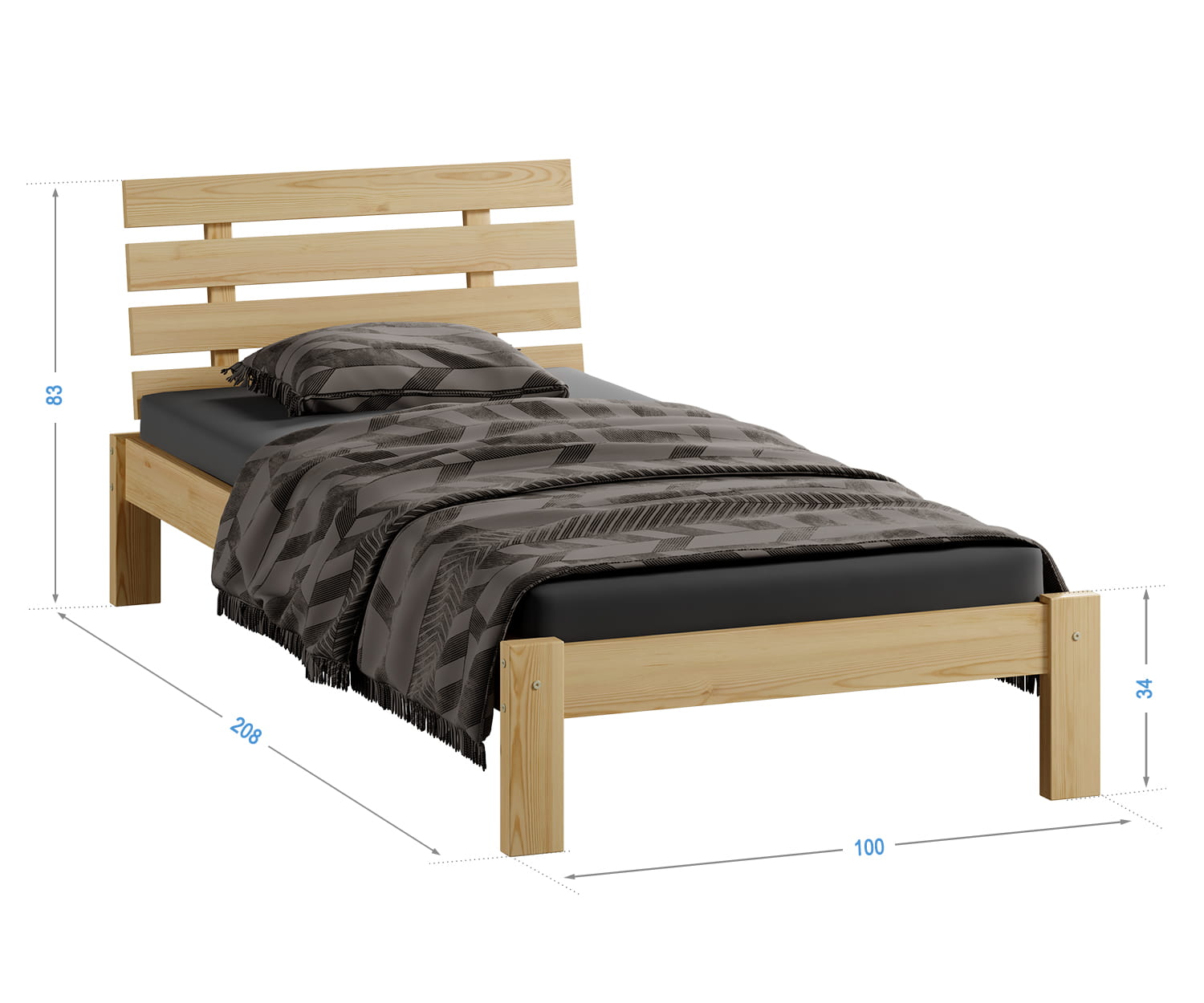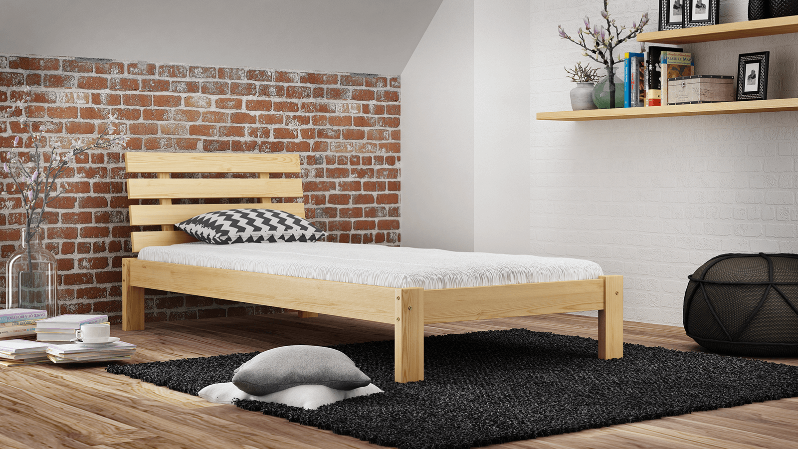 Postel z masivu 90x200 Karla borovice s roštem