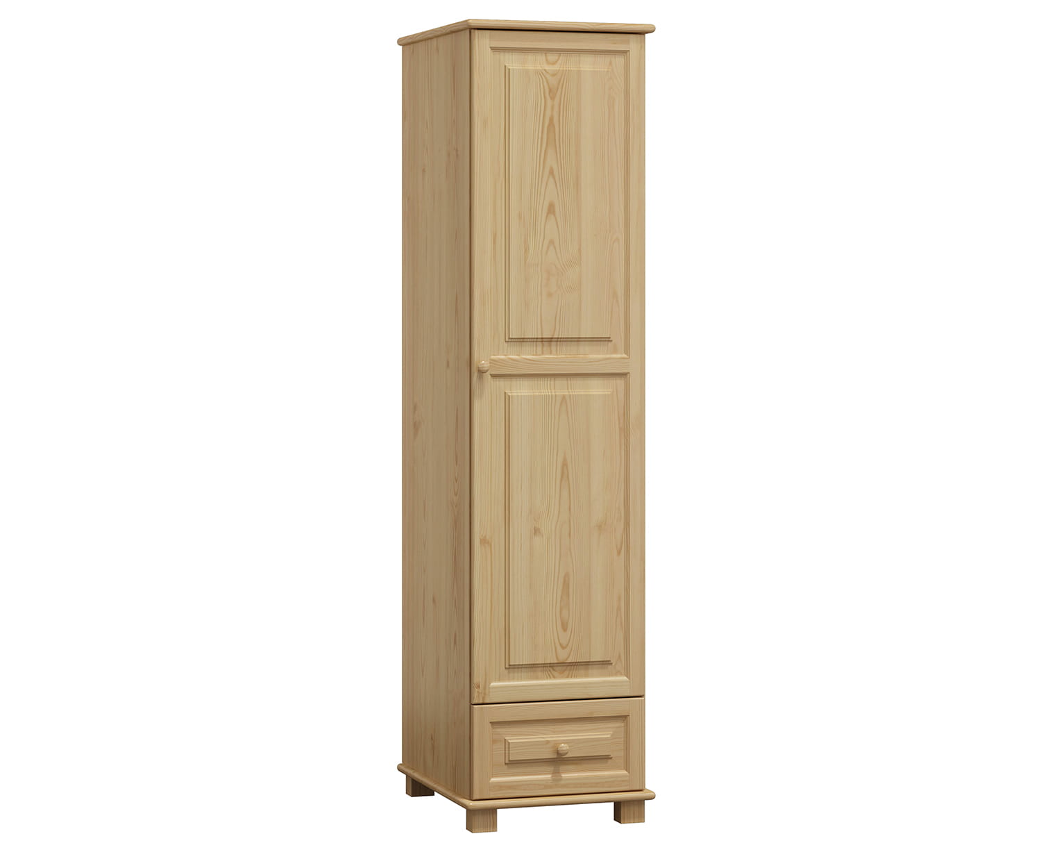 Skříň 1Dč1 police má díky použití borovicového dřeva odolnou a stabilní konstrukci. Nábytek je vyroben z borovicového dřeva nejlepší kvality a natřen 3 vrstvami ekologického laku. Jako jedni z mála používáme při výrobě laky, které mají certifikát Státní hygienické stanice. Laky, které používáme, jsou schváleny pro použití na předmětech, s kterými přicházejí do styku děti (shoda s normou DIN EN 71, č. 3). Výrobek je dodáván v balících a je určen pro samostatnou montáž. |