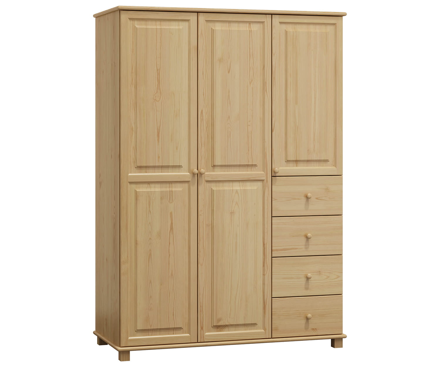 Skříň 3Dč4 šířka 133 má díky použití borovicového dřeva odolnou a stabilní konstrukci. Nábytek je vyroben z borovicového dřeva nejlepší kvality a natřen 3 vrstvami ekologického laku. Jako jedni z mála používáme při výrobě laky, které mají certifikát Státní hygienické stanice. Laky, které používáme, jsou schváleny pro použití na předmětech, s kterými přicházejí do styku děti (shoda s normou DIN EN 71, č. 3). Výrobek je dodáván v balících a je určen pro samostatnou montáž. |