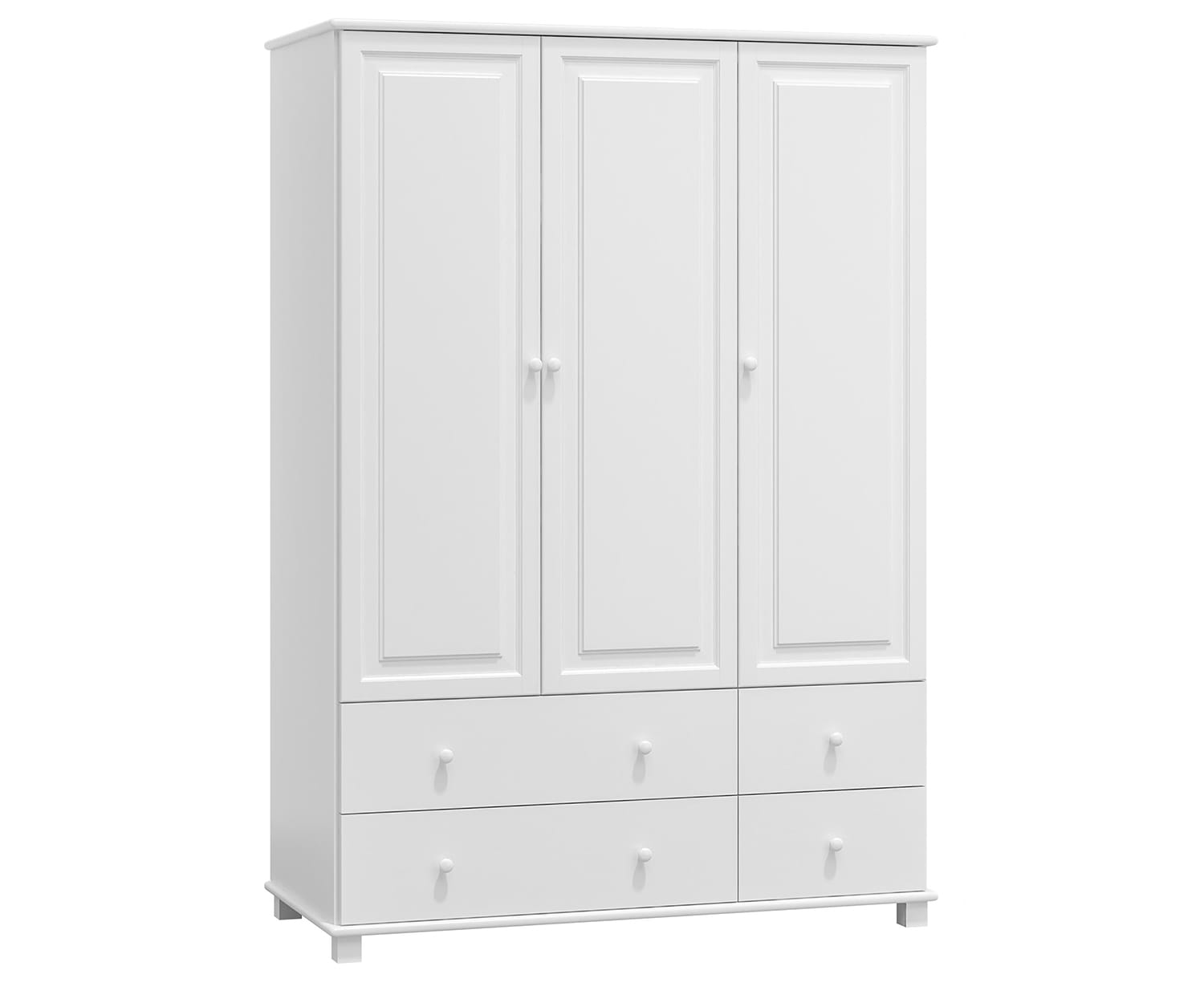 Skříň 3Dč7 šířka 133 bílá má díky použití borovicového dřeva odolnou a stabilní konstrukci. Nábytek je vyroben z borovicového dřeva nejlepší kvality a natřen 3 vrstvami ekologického laku. Jako jedni z mála používáme při výrobě laky, které mají certifikát Státní hygienické stanice. Laky, které používáme, jsou schváleny pro použití na předmětech, s kterými přicházejí do styku děti (shoda s normou DIN EN 71, č. 3). Výrobek je dodáván v balících a je určen pro samostatnou montáž. |