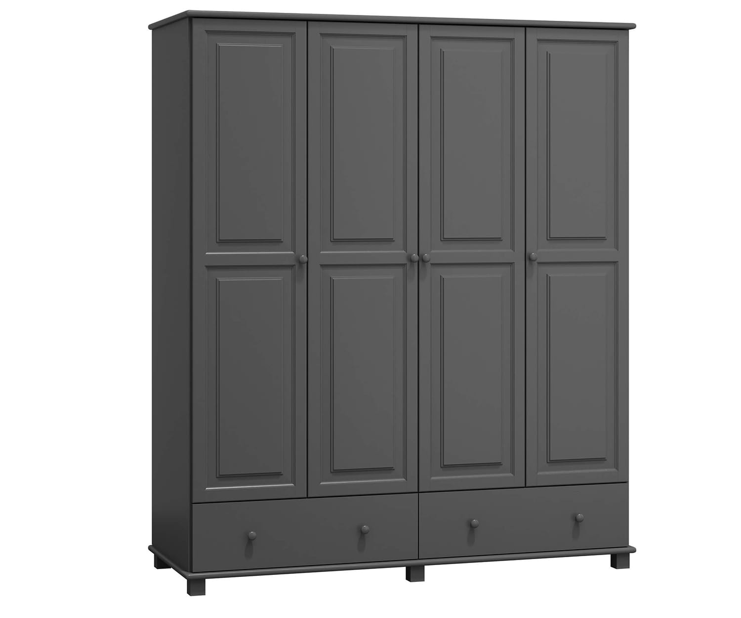 Skříň 4Dč5 šířka 160 šedá má díky použití borovicového dřeva odolnou a stabilní konstrukci. Nábytek je vyroben z borovicového dřeva nejlepší kvality a natřen 3 vrstvami ekologického laku. Jako jedni z mála používáme při výrobě laky, které mají certifikát Státní hygienické stanice. Laky, které používáme, jsou schváleny pro použití na předmětech, s kterými přicházejí do styku děti (shoda s normou DIN EN 71, č. 3). Výrobek je dodáván v balících a je určen pro samostatnou montáž. |
