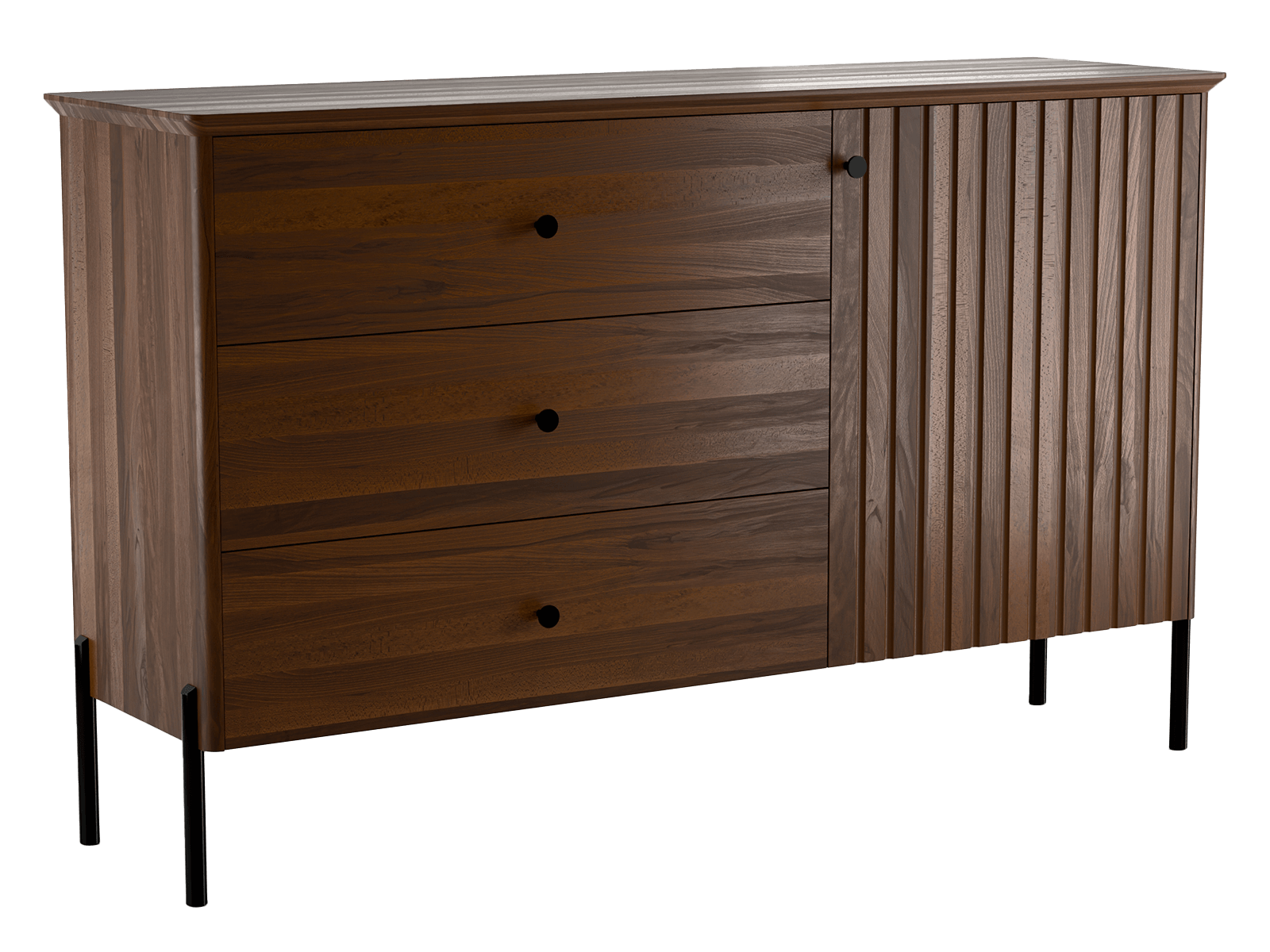 Všestranný design – komoda Lamelo je perfektním doplňkem do každého obývacího pokoje, ložnice, chodby nebo kanceláře. Její harmonický tvar a propracované detaily ji činí snadno přizpůsobitelnou různým stylům interiéru – od skandinávské jednoduchosti, přes strohost loftového stylu, až po klasickou eleganci. Je to kus nábytku, který vždy vypadá dobře – bez ohledu na okolí.