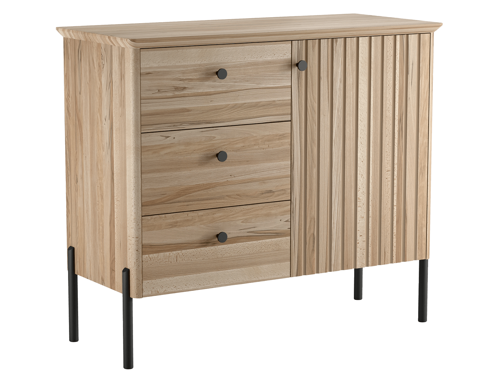Všestranný design – komoda Lamelo je perfektním doplňkem do každého obývacího pokoje, ložnice, chodby nebo kanceláře. Její harmonický tvar a propracované detaily ji činí snadno přizpůsobitelnou různým stylům interiéru – od skandinávské jednoduchosti, přes strohost loftového stylu, až po klasickou eleganci. Je to kus nábytku, který vždy vypadá dobře – bez ohledu na okolí.