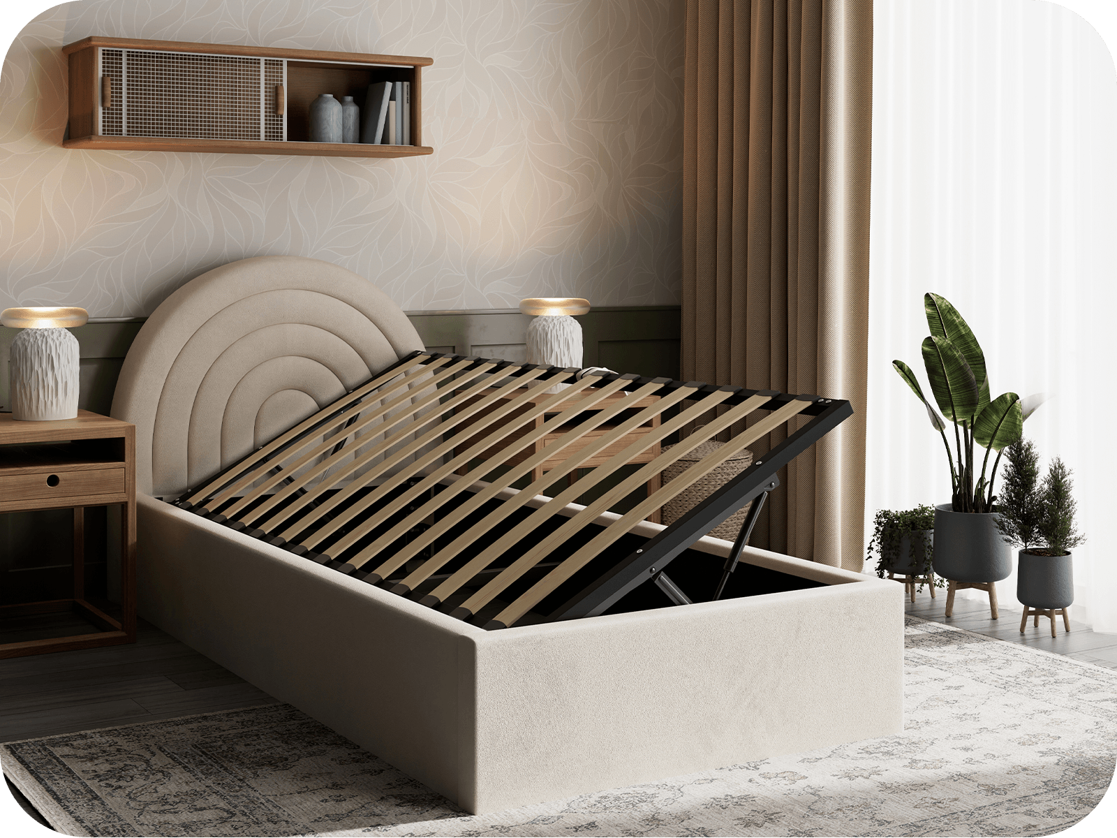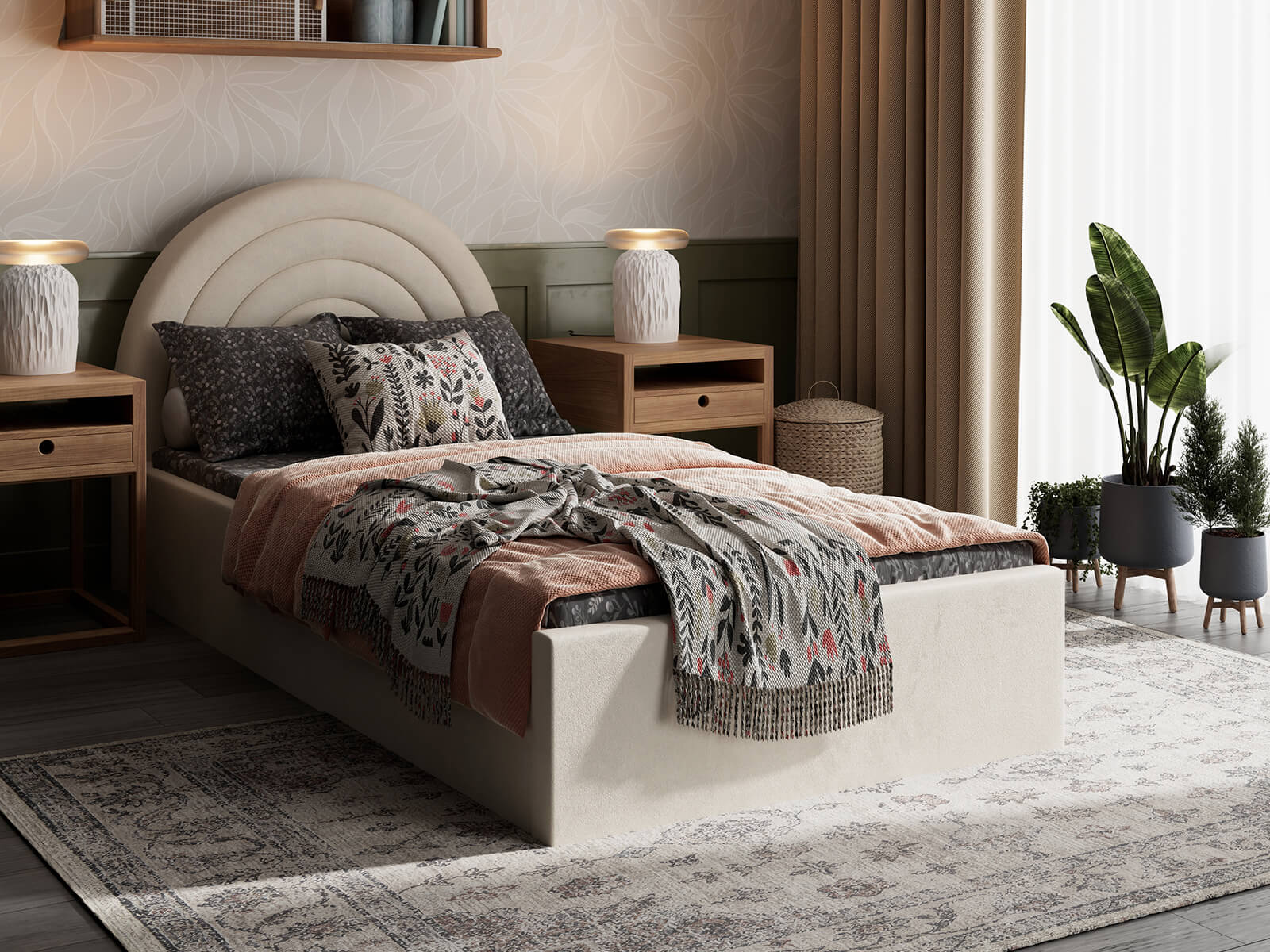Design a funkčnost - Čelo postele ve tvaru duhy dodává pokoji hravý a pozitivní charakter. Tento jedinečný design podněcuje dětskou fantazii a zpříjemňuje každý večer.