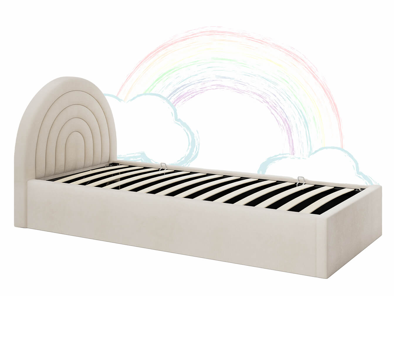 Čalouněná dětská postel s úložným prostorem 90x200 s roštem béžová Bluvel 22 Kids Line 5 Duha