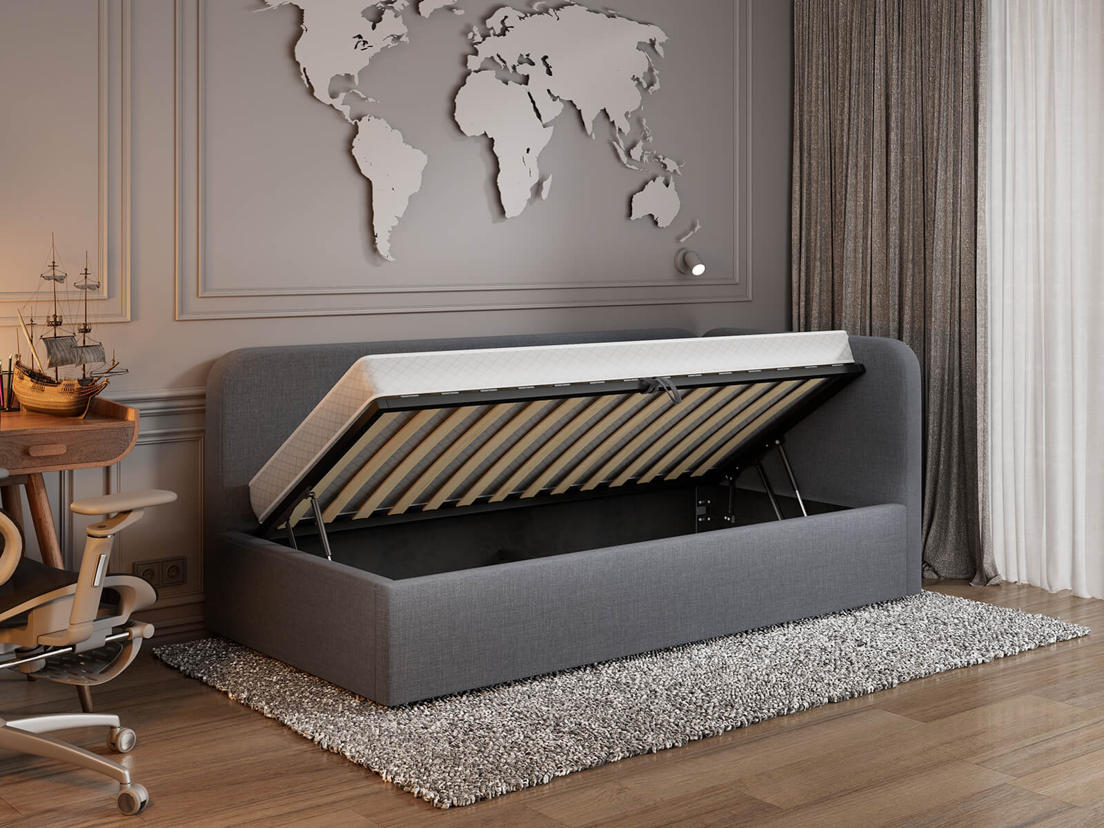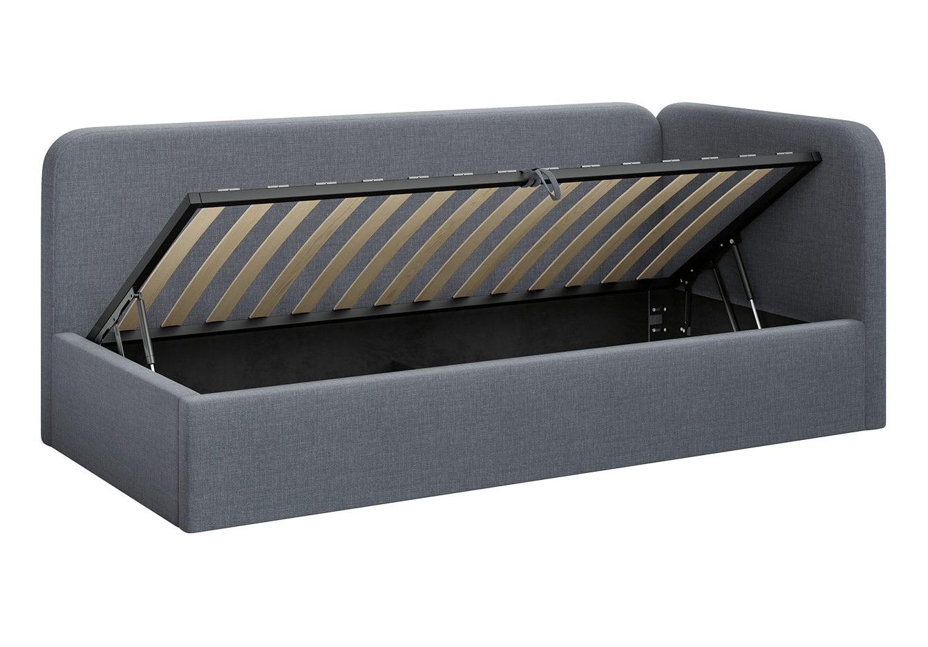 Jedná se o odolnou a estetickou čalouněnou jednolůžkovou postel s úložným prostorem, navrženou s důrazem na každodenní komfort a maximální využití prostoru.