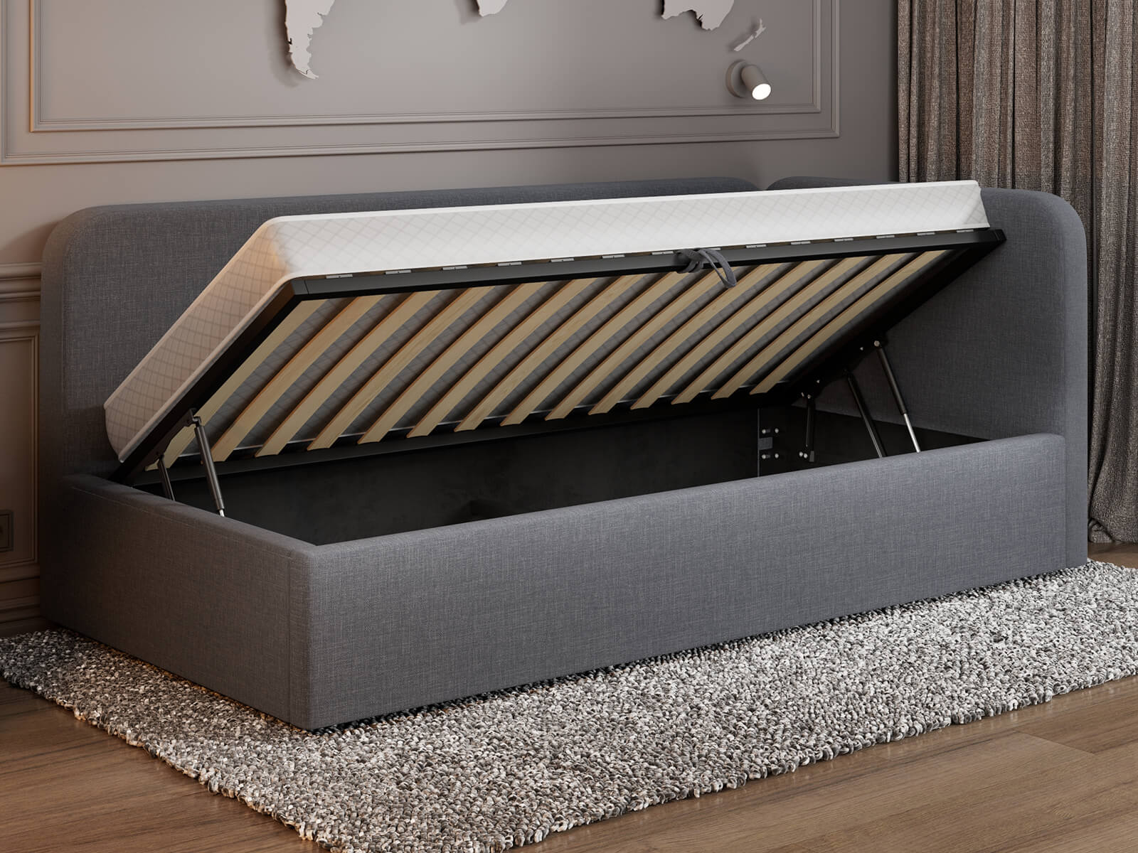 Zvedací rošt – Stabilní kovový rám a mechanismus zvedání zajišťují snadný přístup k prostornému úložnému prostoru.