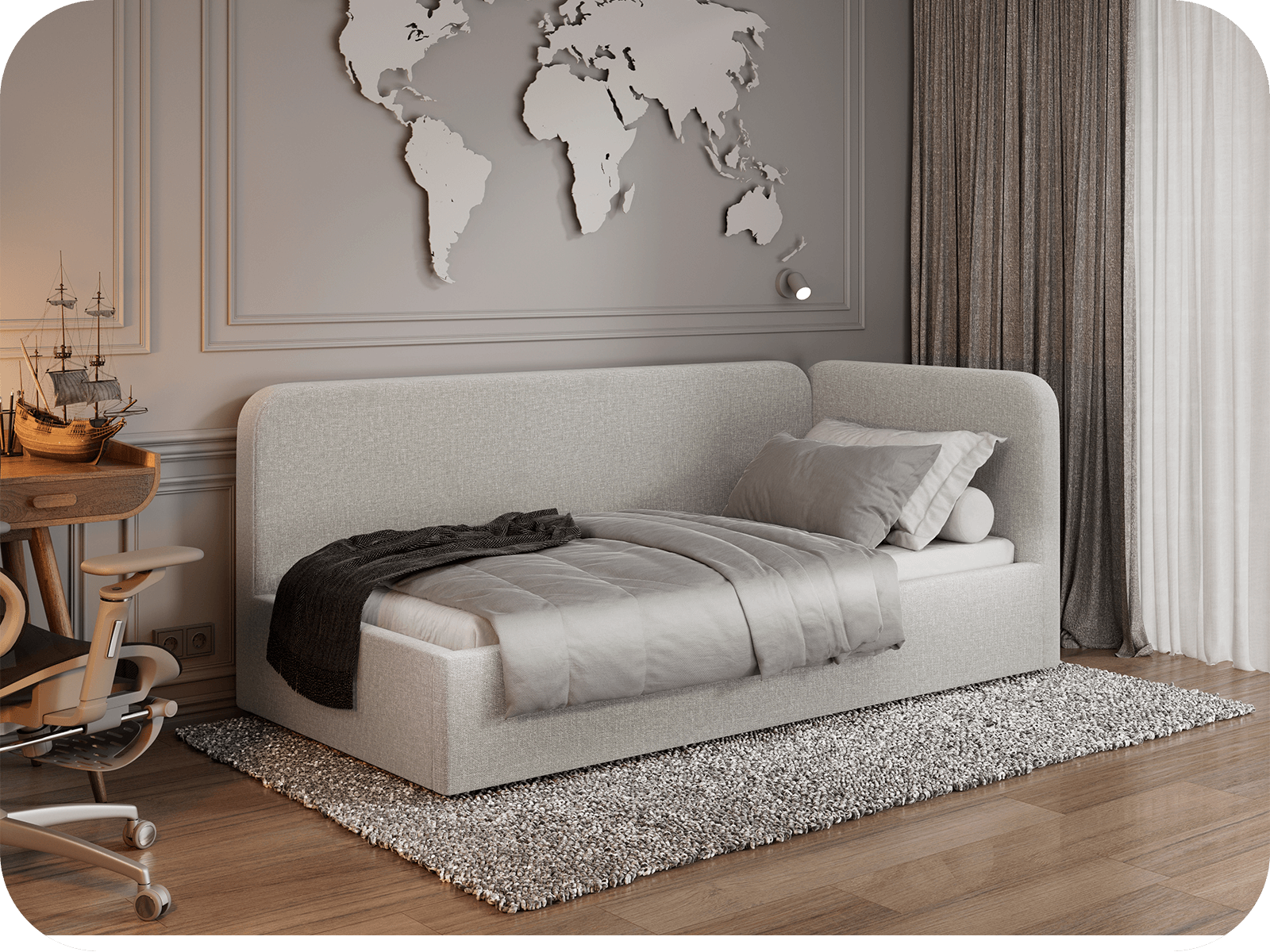 o produktuModel Leo 90x200 je ideální volbou pro ty, kteří oceňují jednoduchý design, funkčnost a nadčasový styl. Čalouněná konstrukce s měkkým opěradlem zajišťuje, že postel skvěle poslouží nejen jako pohodlné místo na spaní, ale i jako komfortní zóna pro relaxaci během dne. Díky svému tvaru se perfektně hodí do dětského nebo studentského pokoje, garsonky i menších prostor.