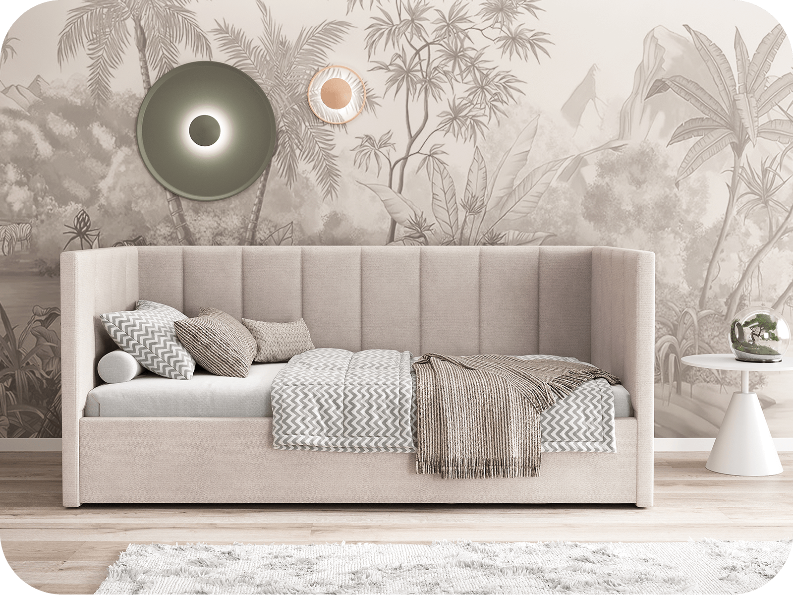 o produktuDodá vaší ložnici nádech vytříbené elegance a maximálního pohodlí s touto unikátní čalouněnou rozkládací pohovkou. Není to jen funkční kus nábytku, ale také vyjádření stylu a dobrého vkusu. Postel je pečlivě čalouněna látkou Soro 21 v béžovém odstínu, která se vyznačuje jemnou vazbou, trvanlivostí a odolností proti oděru - je příjemná na dotek a skvěle se hodí pro každodenní použití, čímž dodává interiéru elegantní a decentní vzhled. Díky svému elegantnímu tvaru a univerzálním barvám se postel dokonale hodí do uspořádání ložnic v glamour, klasickém i moderním stylu. Vysoké, měkce polstrované čelo postele poskytuje pohodlí při večerním čtení nebo ranní relaxaci a zároveň je efektním dekorativním prvkem. Pevná konstrukce zaručuje odolnost po mnoho let a promyšlený design nabízí i praktická řešení, jako je prostorný úložný prostor na ložní prádlo nebo jiné textilie.