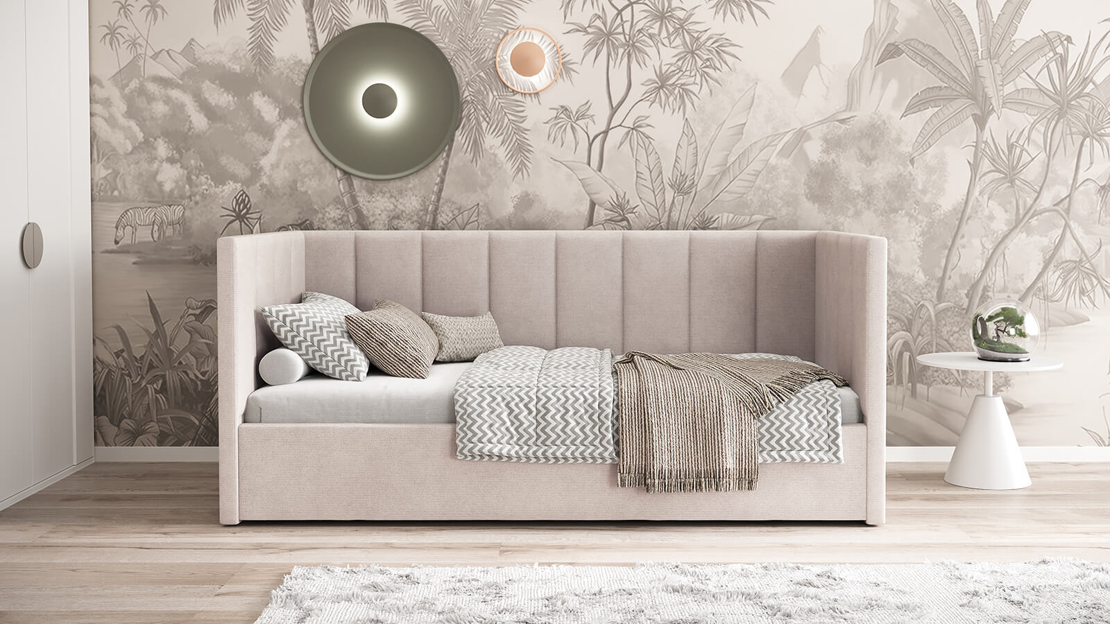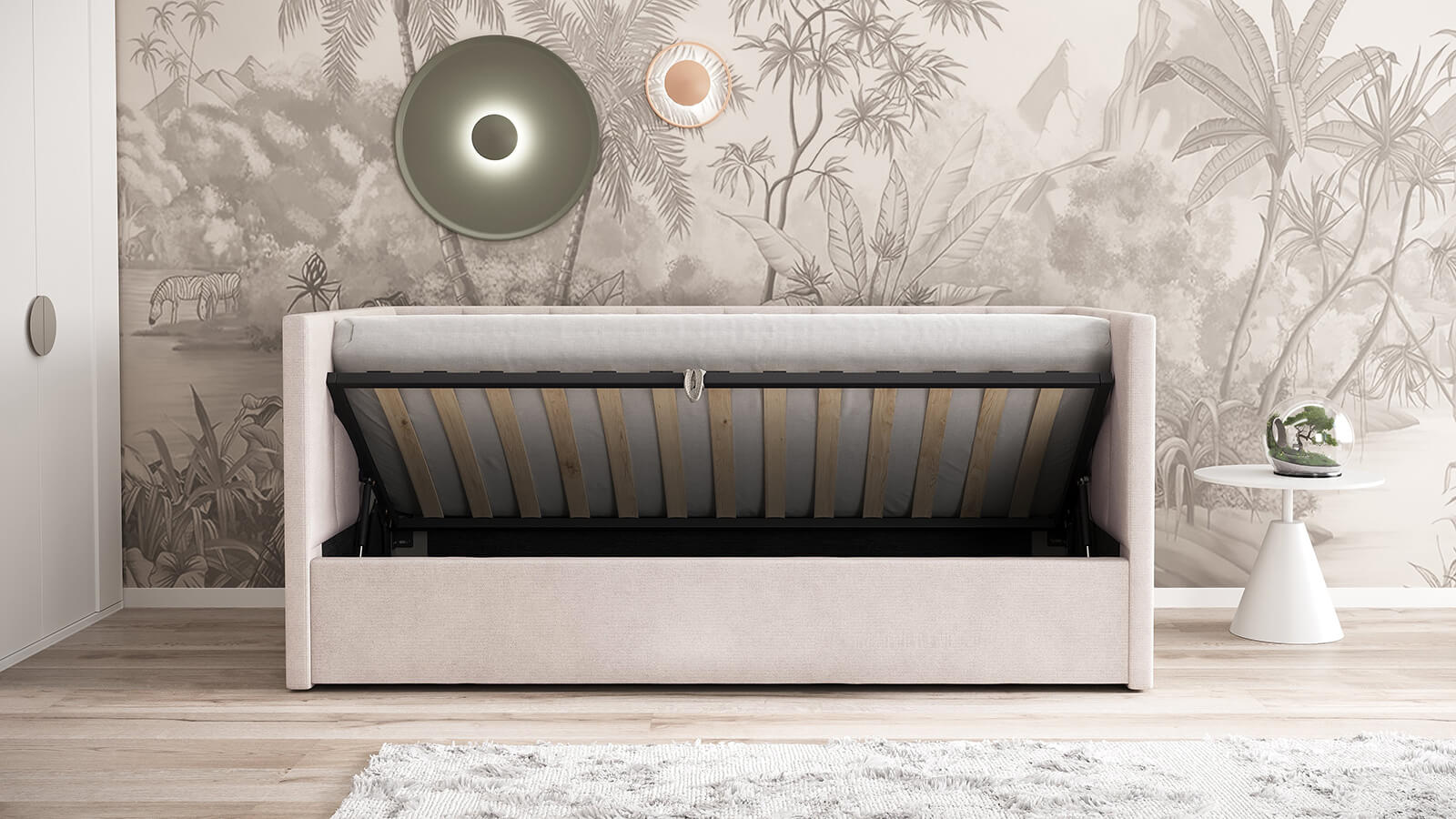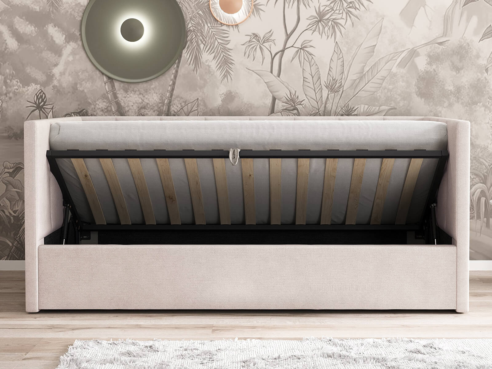 Čalouněná jednolůžková pohovka s roštem a úložným prostorem 90x200, Urus Soro 21