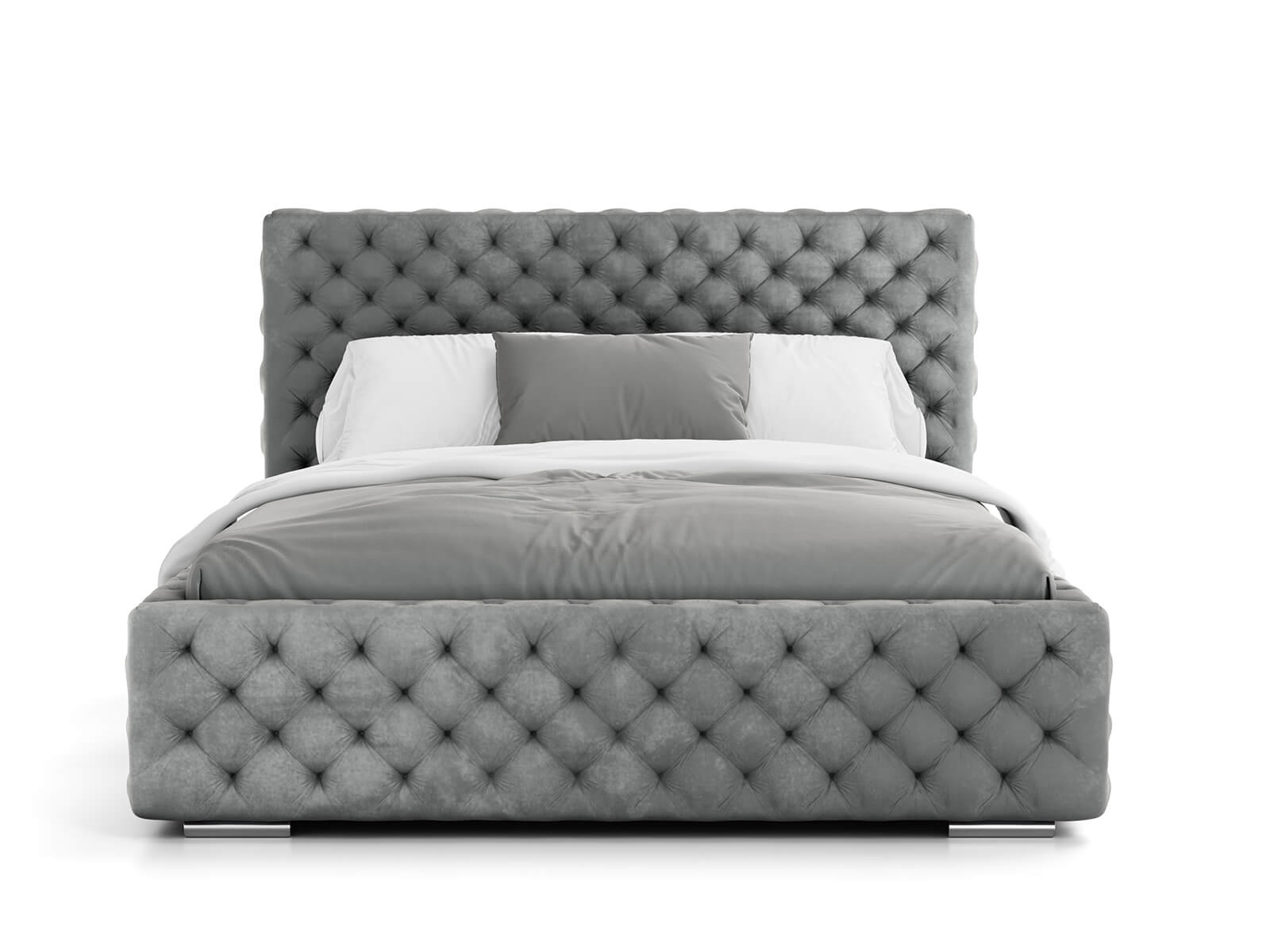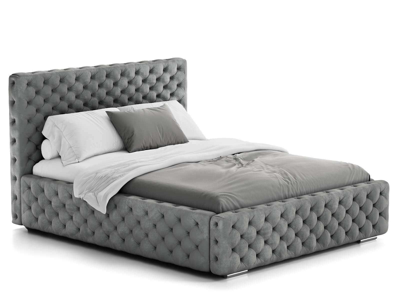 Měkká sametová látka s hlubokým prošíváním dodává posteli jedinečný charakter a vytváří poutavý kus nábytku, který vynikne v každém aranžmá.