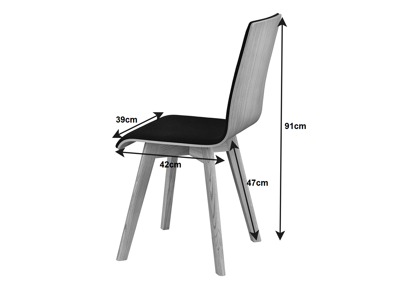 - Vysoce kvalitní materiály: dubové dřevo a čalouněný sedák a opěrák