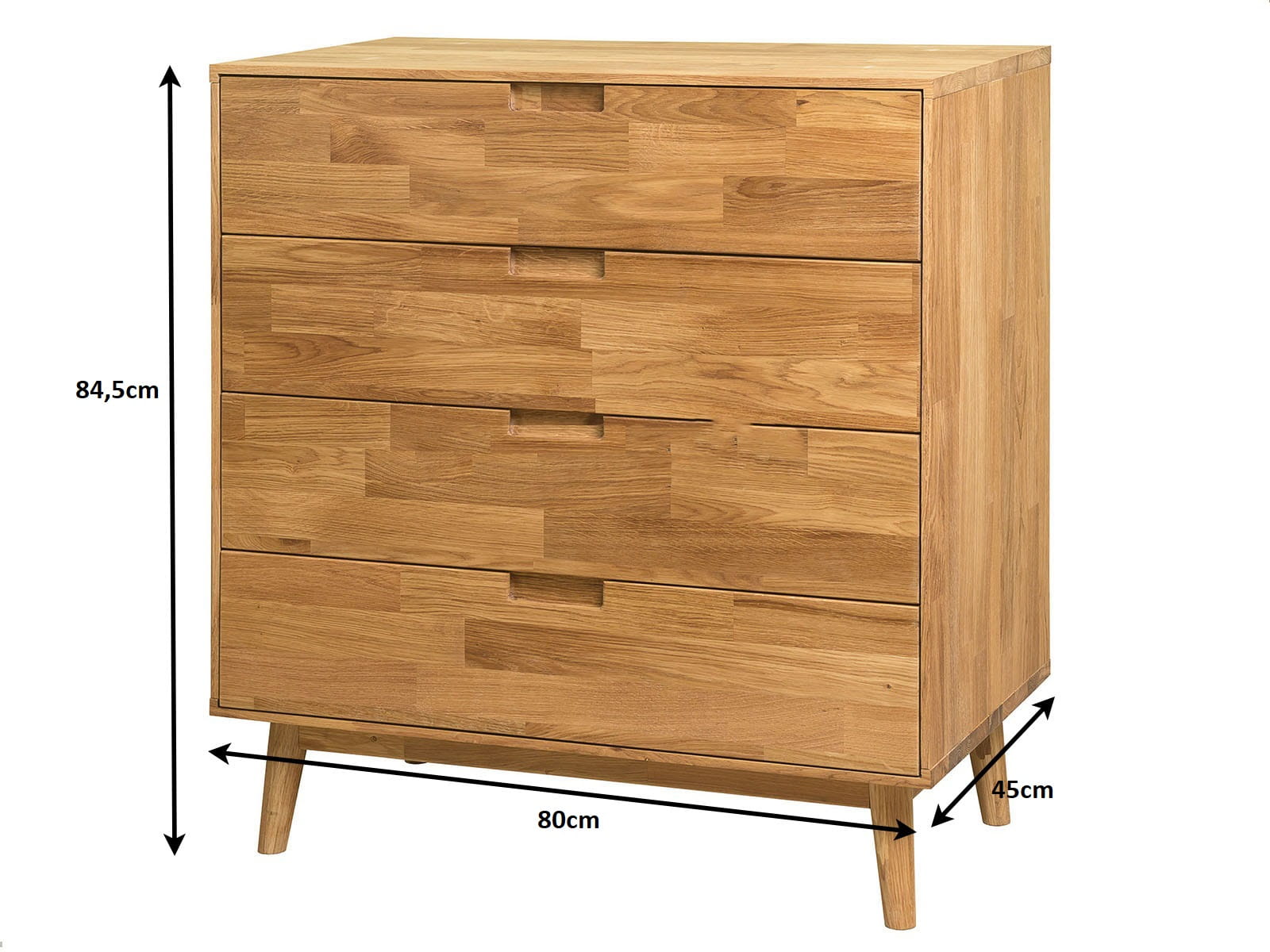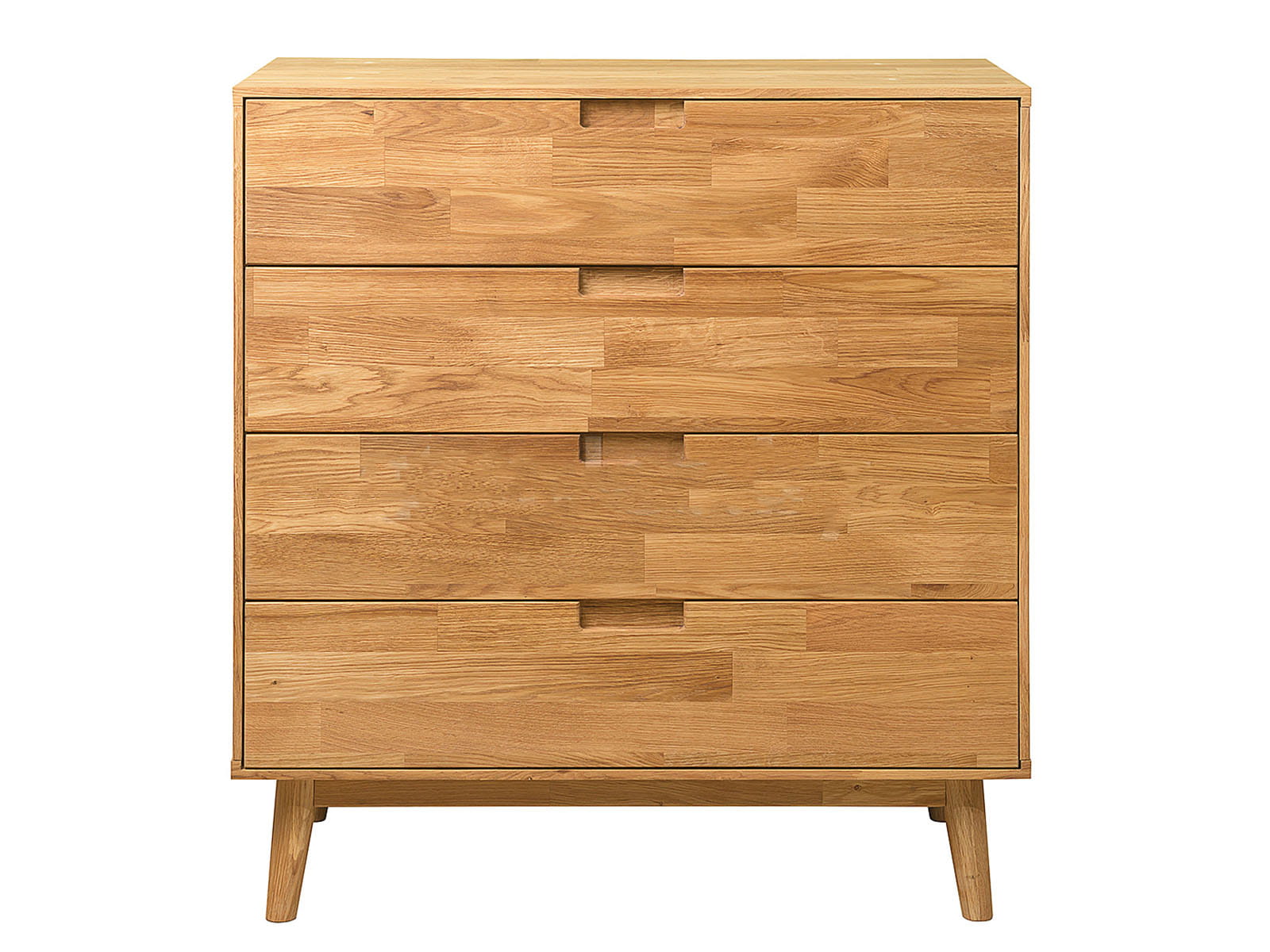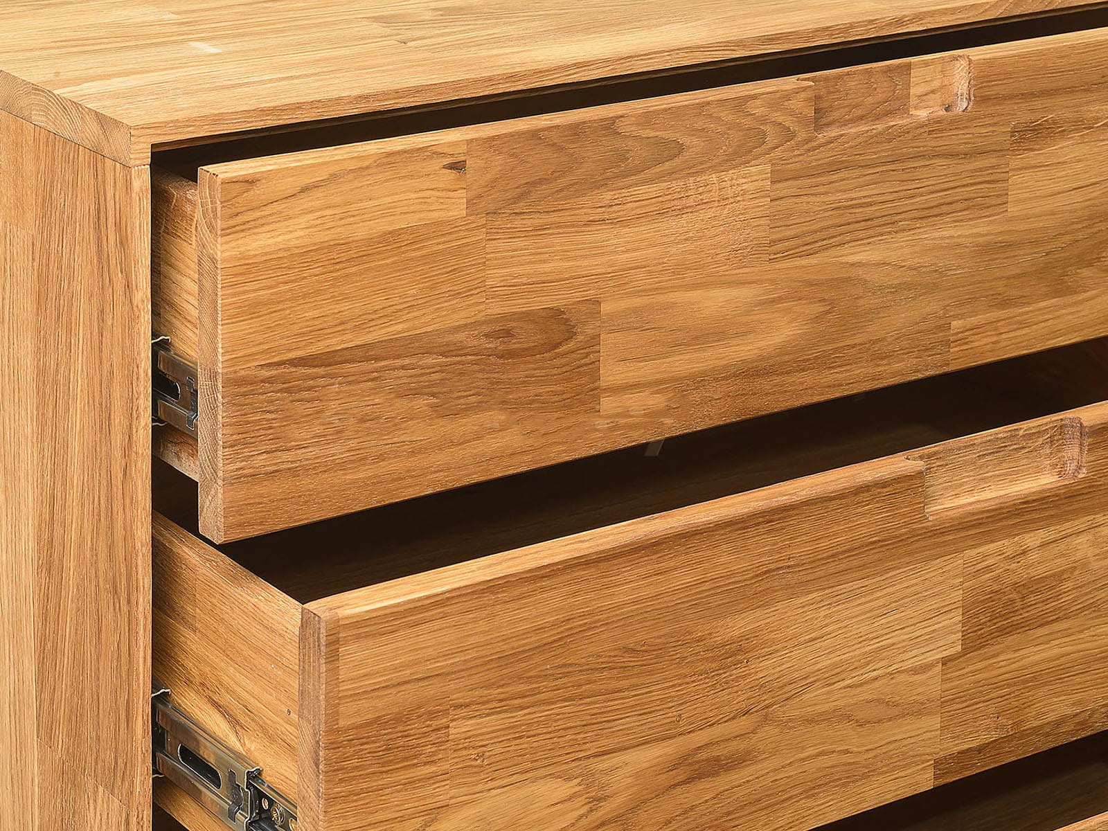 V NEJLEPŠÍ KVALITĚ Komoda Bergen je vyrobena z vysoce kvalitního dubového dřeva, které je skutečným "bílým havranem" mezi stromy. V zrnech, sucích a přirozeném zbarvení nacházíme přirozenou, bohatou historii tohoto dřeva, ze které můžeme čerpat zdroj mimořádné inspirace pro náš domov. PRAKTICKÉ VYUŽITÍ Komoda má elegantní, přírodní vzhled. Kromě stylového, mimořádně útulného designu má také řadu praktických funkcí. Čtyři masivní, prostorné zásuvky dokonale pojmou všechny kusy oblečení a další potřebné drobnosti. Komoda bude dokonalým a praktickým doplňkem k dalšímu výjimečnému nábytku z mimořádně stylové kolekce Bergen. KOMODA JE VYBAVENA 4 prostornými zásuvkami Frézované úchyty na čelech nábytku |