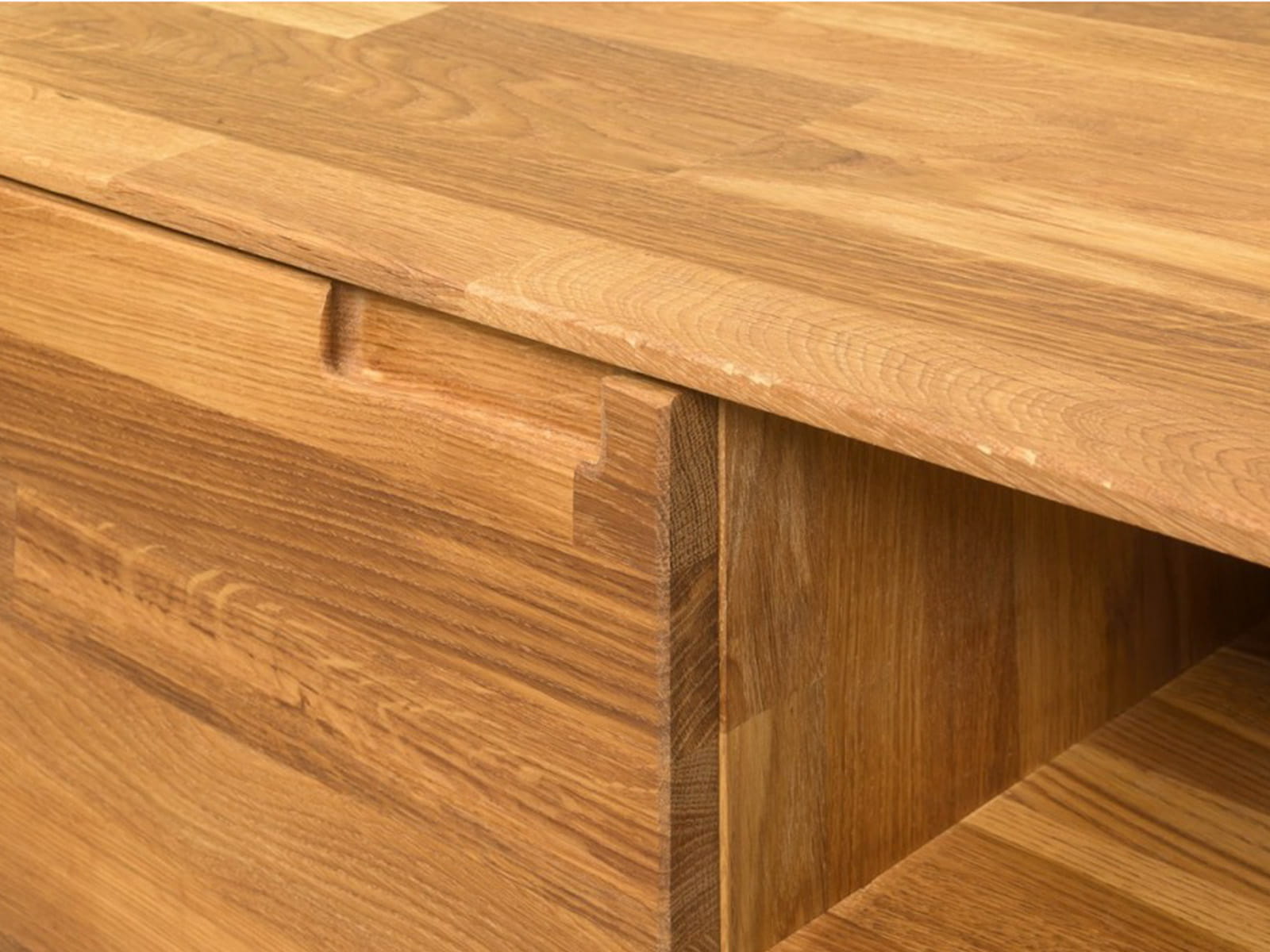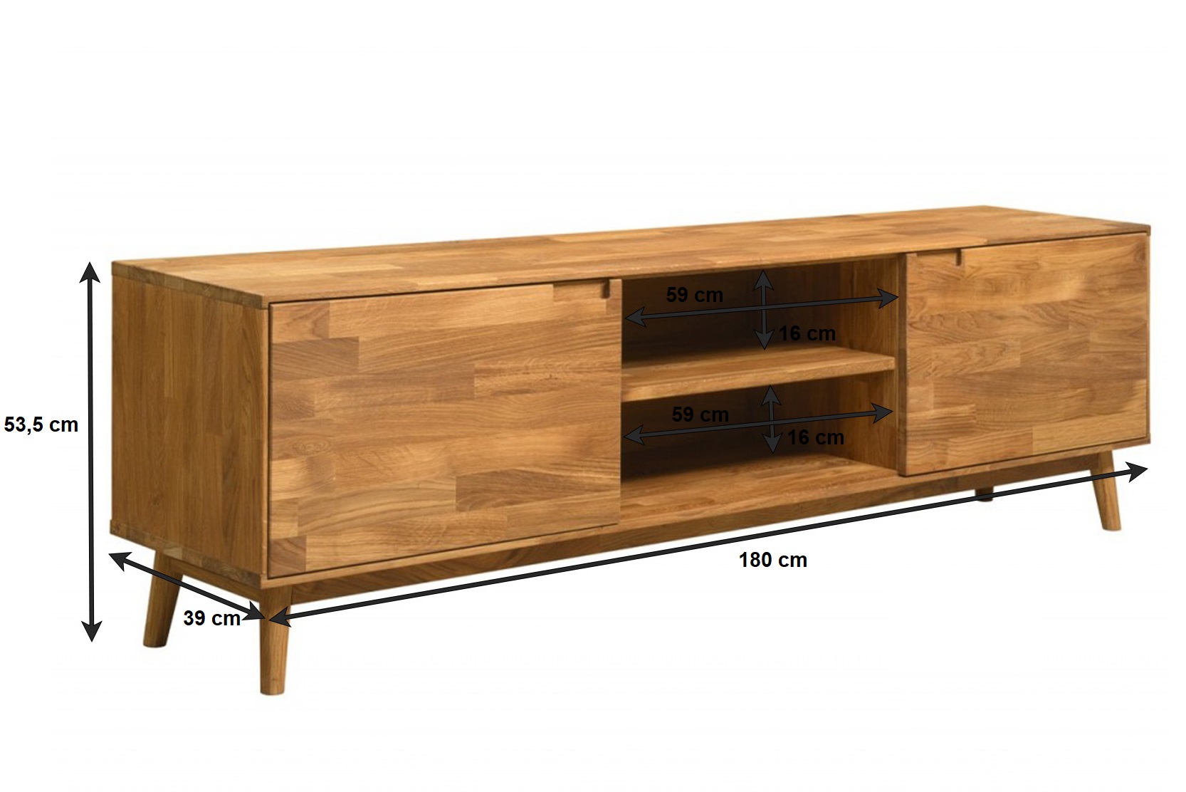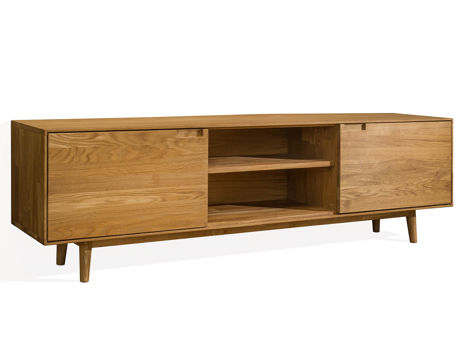 V NEJLEPŠÍ KVALITĚ Stůl Bergen RTV je vyroben z vysoce kvalitního dubového dřeva, které je skutečným "bílým havranem" mezi stromy. V zrnech, sucích a přirozeném zbarvení nacházíme přirozenou, bohatou historii tohoto dřeva, ze které můžeme čerpat zdroj mimořádné inspirace pro náš domov. PRAKTICKÉ VYUŽITÍ Stůl RTV má elegantní, přírodní vzhled. Kromě stylového, mimořádně útulného designu má také řadu praktických funkcí. Na velkou horní desku se jistě vejde televizor na míru vašim požadavkům. Dvě police pod ním vám usnadní ukládání RTV vybavení. Další prostor se skrývá za dvířky, kde jsou umístěny 2 police. SKŘÍŇKA RTV JE VYBAVENA 2 policemi 2 dvířka, z nichž každé ukrývá 2 skříňky Úchyty vyfrézované v čelech nábytku |