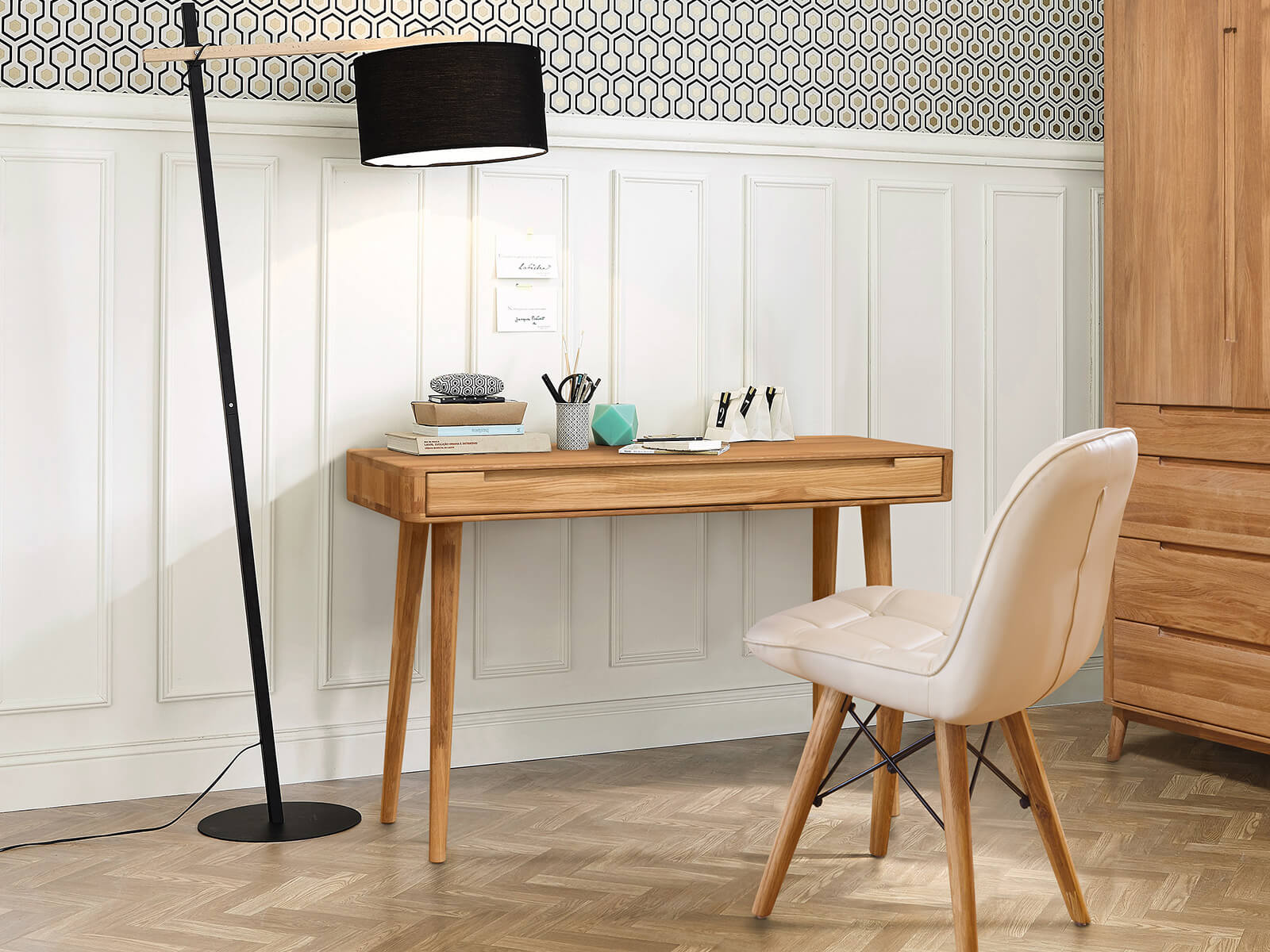 V NEJLEPŠÍ KVALITĚ Toaletní stolek Bergen je vyroben z vysoce kvalitního dubu, který je mezi dřevinami skutečným "bílým havranem". V kresbě, sucích a přirozeném zbarvení nacházíme přirozenou, bohatou historii tohoto dřeva, ze které můžeme čerpat zdroj mimořádné inspirace pro náš domov. PRAKTICKÉ VYUŽITÍ Kromě stylového, mimořádně útulného designu má také řadu praktických vlastností. Toaletní stolek má prostornou zásuvku. Bude dokonalým, praktickým doplňkem k dalšímu výjimečnému nábytku z mimořádně stylové kolekce Bergen. TOALETNÍ STOLEK JE VYBAVEN 1 prostornou zásuvkou Úchytka vyfrézovaná v čelech nábytku |