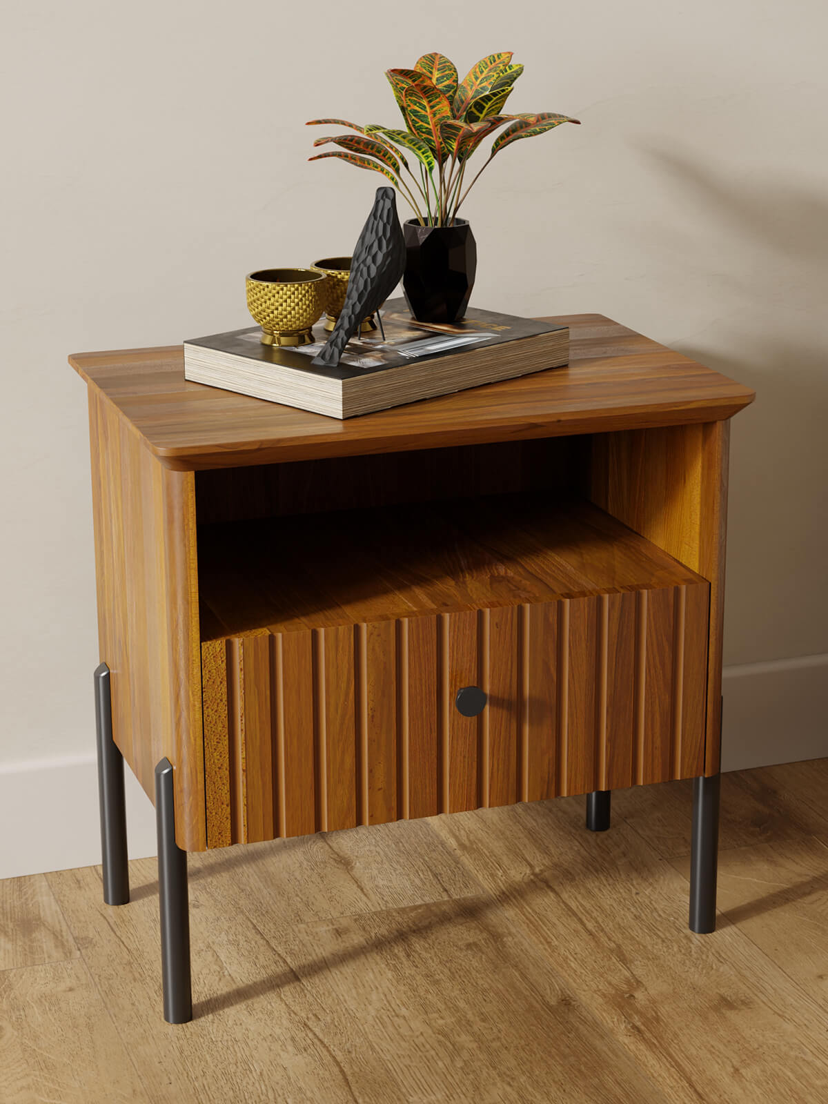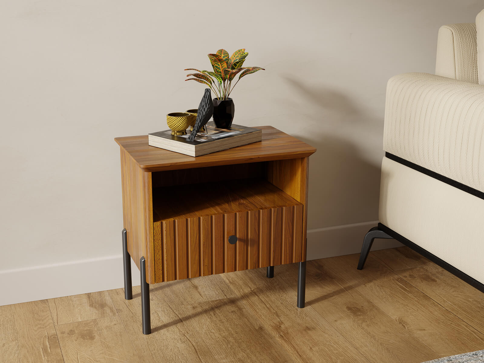 Všestranný design – noční stolek Lamelo se perfektně hodí do moderních, minimalistických ložnic, ale i do klasických, skandinávských a loftových interiérů. Jeho nadčasový tvar a dekorativní detaily z něj činí harmonický doplněk do nejrůznějších interiérů a dodávají mu eleganci a sofistikovanost.
