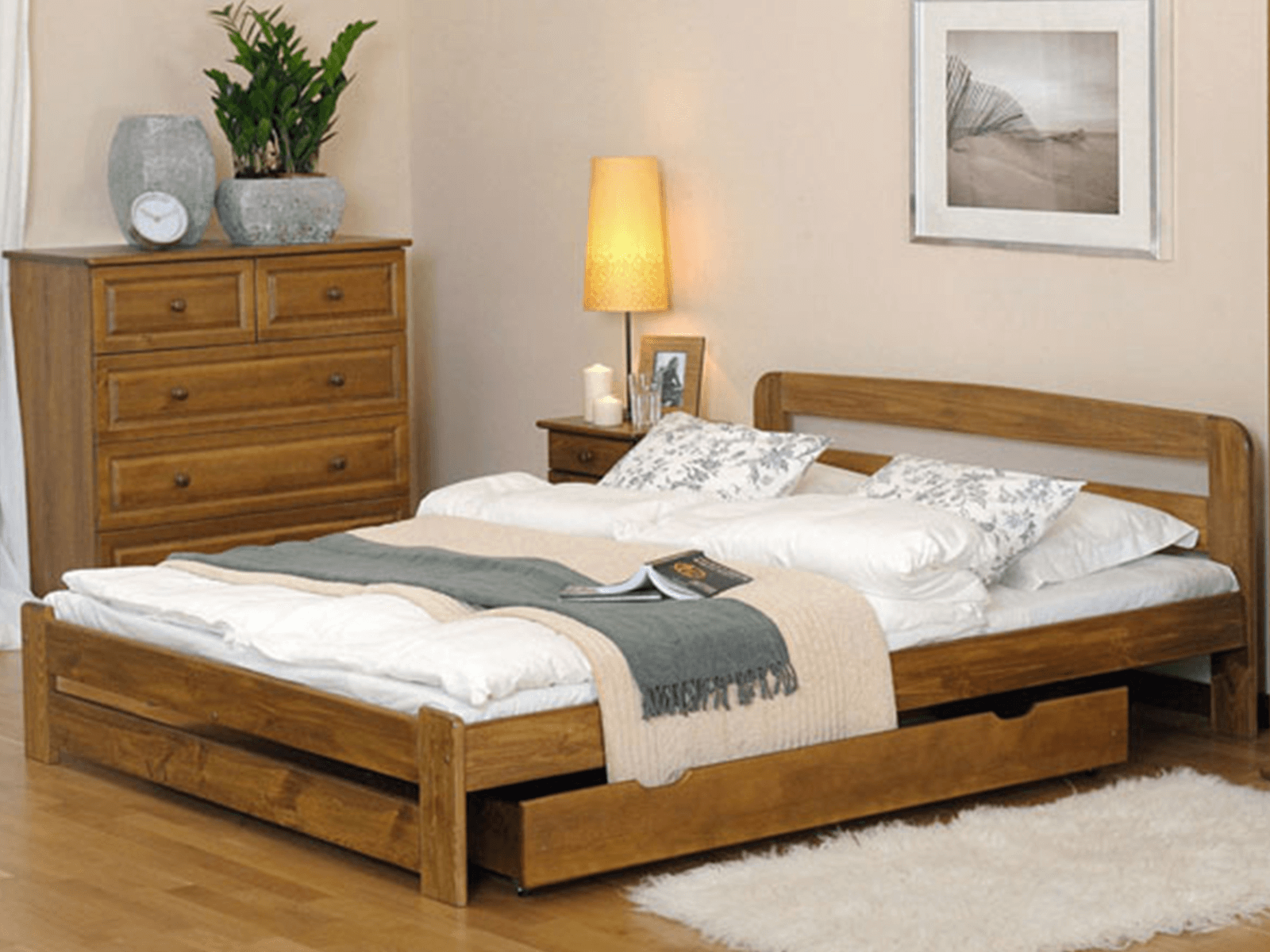 Přirozená krása: Postel Saša je vyrobena z masivního borovicového dřeva, které přináší teplo a útulnost do každé ložnice. Borovice má jedinečné letokruhy a přírodní odstín, který se hodí do moderního i klasického interiéru.