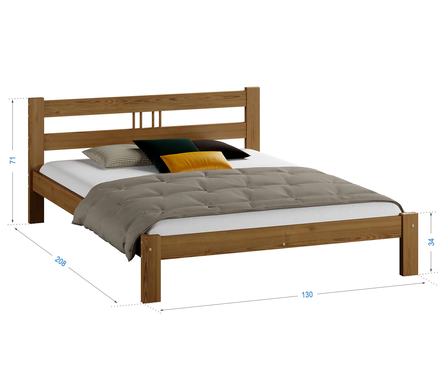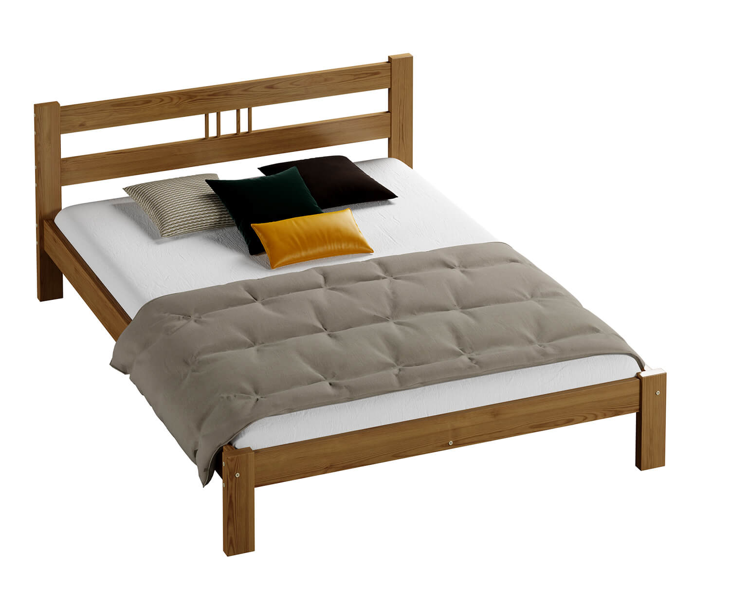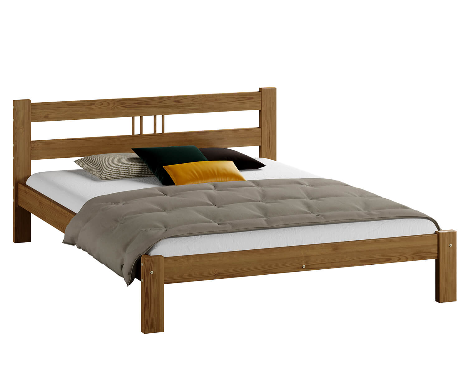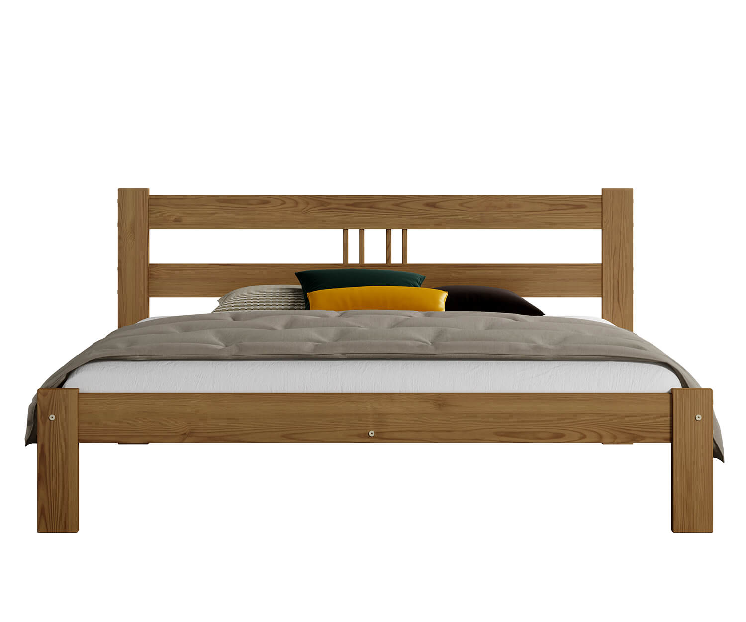 | 1. Rám vyrobený z přírodního borovicového dřeva. 2. Rošt z 13 odolných pružinových lišt z vrstveného březového dřeva. 3. Hladký povrch dřeva získaný pečlivým broušením, leštěním a lakováním. 4. Montážní sadu + klíč 5. Zpevňující lištu + 3x pátou nohu. 6. Návod k montáži. 7. Pojištění zásilky.