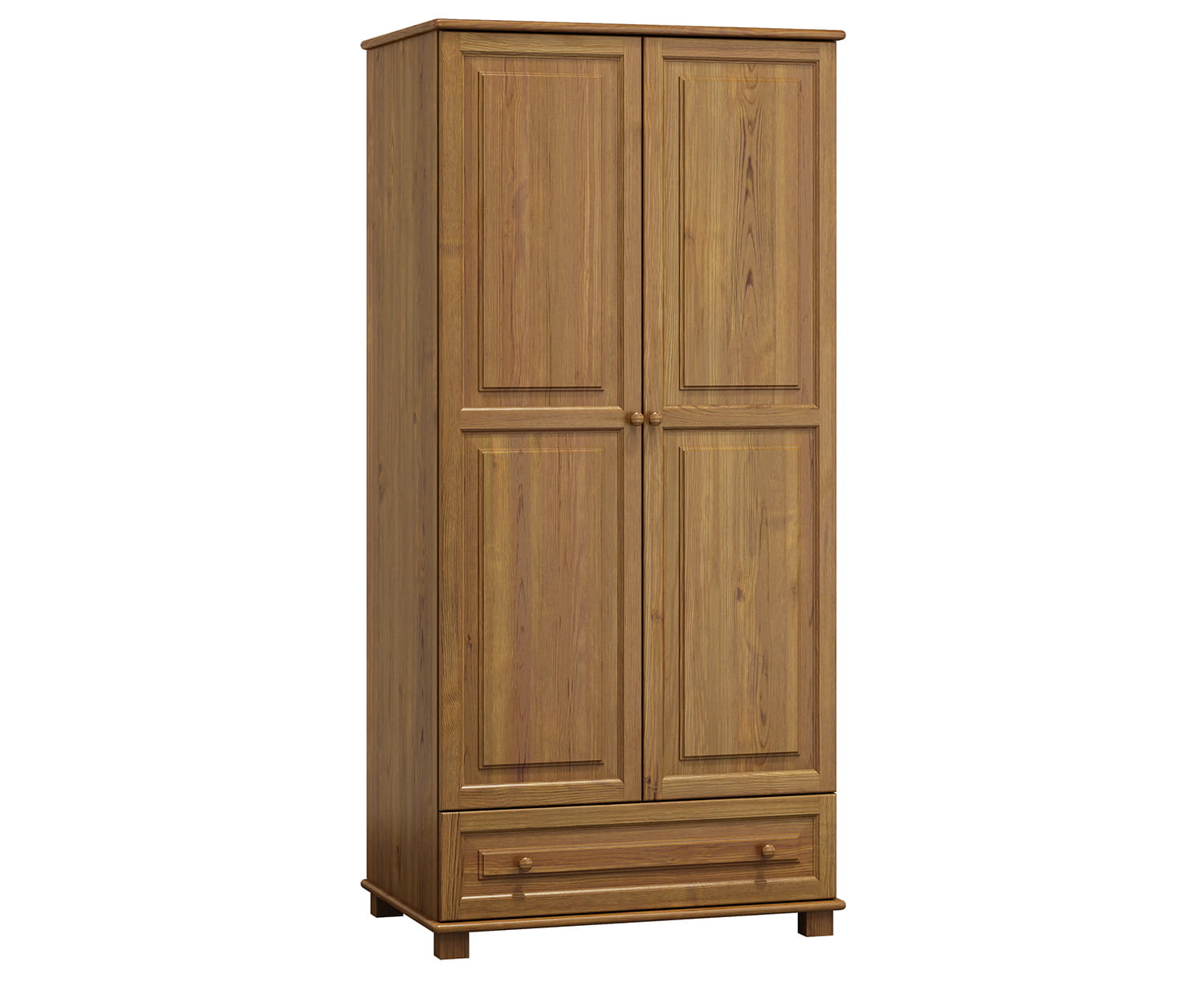 Skříň 2Dč1 šířka 80 věšák/police má díky použití borovicového dřeva odolnou a stabilní konstrukci. Nábytek je vyroben z borovicového dřeva nejlepší kvality a natřen 3 vrstvami ekologického laku. Jako jedni z mála používáme při výrobě laky, které mají certifikát Státní hygienické stanice. Laky, které používáme, jsou schváleny pro použití na předmětech, s kterými přicházejí do styku děti (shoda s normou DIN EN 71, č. 3). Výrobek je dodáván v balících a je určen pro samostatnou montáž. |