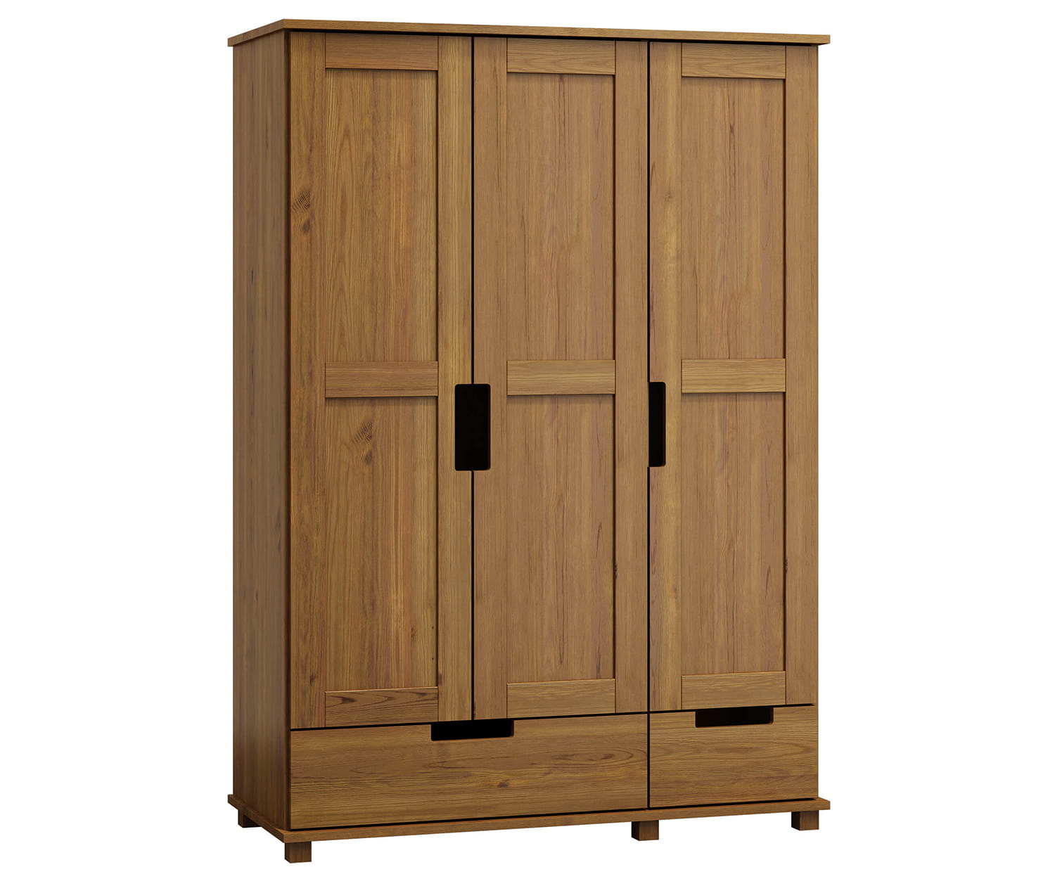 | Řada modern – nábytek se vyznačuje inovativním designem, který padne do gusta milovníkům moderního vzhledu interiérů. Skříně jsou nepostradatelnými prvky šatníku nebo ložnice, které pomáhají udržovat pořádek v uloženém oblečení. Dřevěné skříně vyrobené z přírodního borovicového dřeva zajišťují pevnou a odolnou konstrukci nábytku. Použitá nová řešení v podobě zaříznutých úchytů, poskytuje nekonvenční tvar, který dokonale doplní vnitřní prostory. Skříň č. 9 má v sadě tyč na zavěšení oblečení a v jedné části tři poličky. V dolní části se nachází 2 zásuvky, které se vysouvají na pojezdech. Nábytek určený pro samostatnou montáž. |