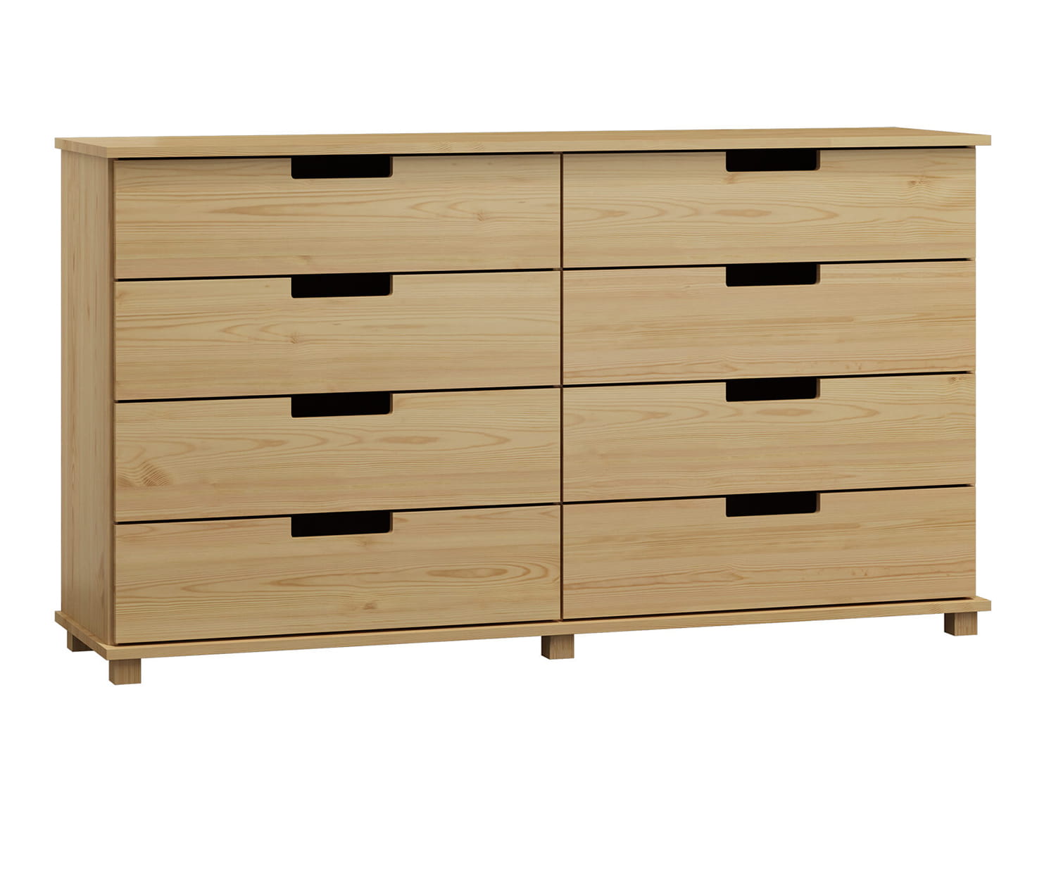 | Řada modern – nábytek se vyznačuje inovativním designem, který padne do gusta milovníkům moderního vzhledu interiérů. Komody se těší popularitou vzhledem k jednoduchosti uchovávání oblečení nebo jiných předmětů. Dřevěné komody jsou vhodné pro denní používání a poskytují místnosti jedinečný charakter. Komoda č. 1 je model vyrobený z borovicového dřeva. Nekonvenční tvar tohoto kusu nábytku stylově doplní interiér. Osm prostorných zásuvek umožní ukládání velkého množství předmětů při současném udržení pořádku. Vyřezané úchyty v čele zásuvek a použité pojezdy zajišťují lehké vysunutí. Tato komoda z borovicového dřeva bude vkusným a funkčním doplňkem ložnice, šatníku nebo obývacího pokoje. Nábytek určený pro samostatnou montáž. |