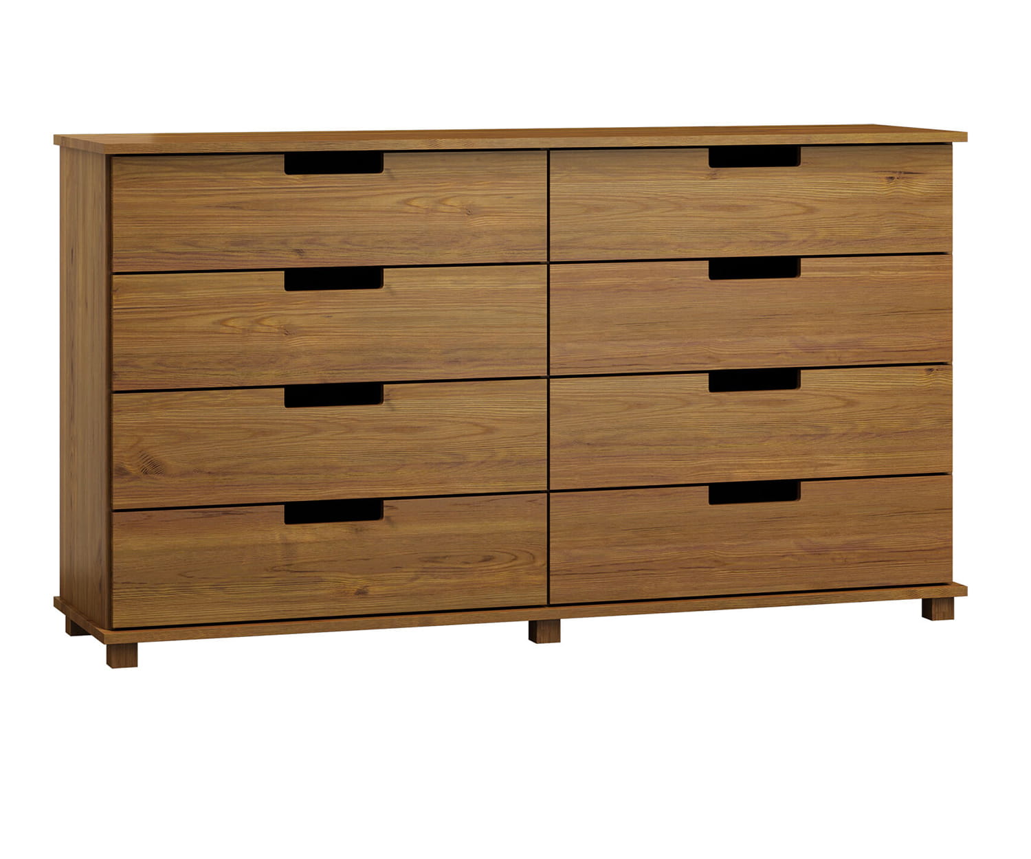| Řada modern – nábytek se vyznačuje inovativním designem, který padne do gusta milovníkům moderního vzhledu interiérů. Komody se těší popularitou vzhledem k jednoduchosti uchovávání oblečení nebo jiných předmětů. Dřevěné komody jsou vhodné pro denní používání a poskytují místnosti jedinečný charakter. Komoda č. 1 je model vyrobený z borovicového dřeva. Nekonvenční tvar tohoto kusu nábytku stylově doplní interiér. Osm prostorných zásuvek umožní ukládání velkého množství předmětů při současném udržení pořádku. Vyřezané úchyty v čele zásuvek a použité pojezdy zajišťují lehké vysunutí. Tato komoda z borovicového dřeva bude vkusným a funkčním doplňkem ložnice, šatníku nebo obývacího pokoje. Nábytek určený pro samostatnou montáž. |