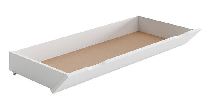 Tato zásuvka o výšce 2,2 cm je vyrobena z odolné dřevotřísky a je dodávána s kolečky. Její rozměry jsou: výška bočnice 14 cm (včetně koleček), hloubka bočnice 64 cm nahoře a 50 cm dole, délka přední stěny 144,1 cm a délka zadní stěny 137,6 cm.