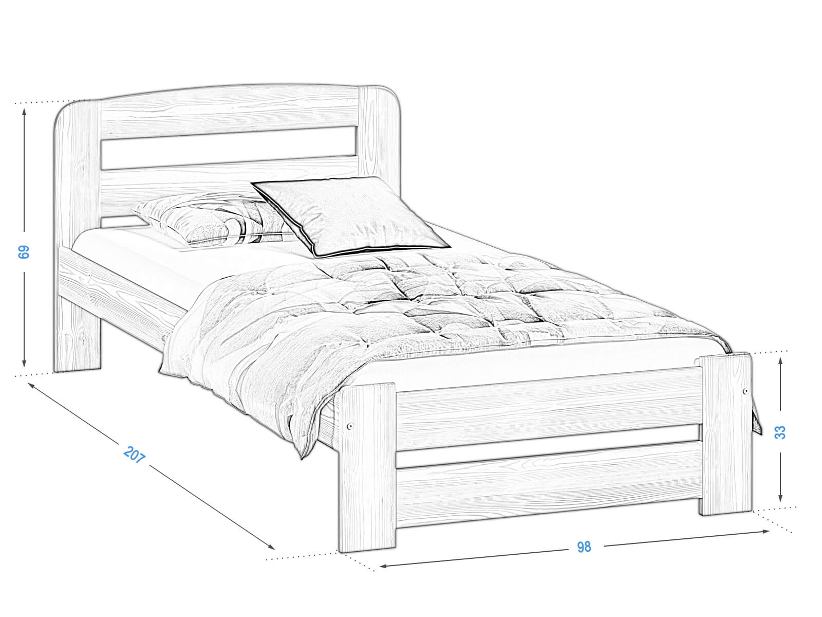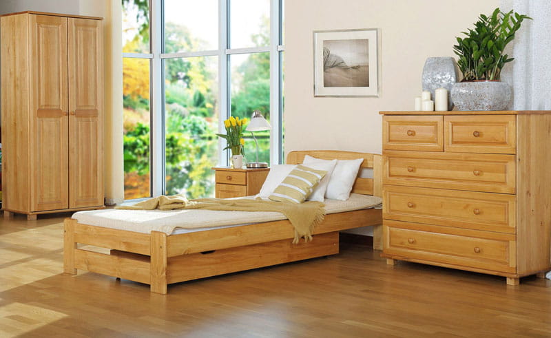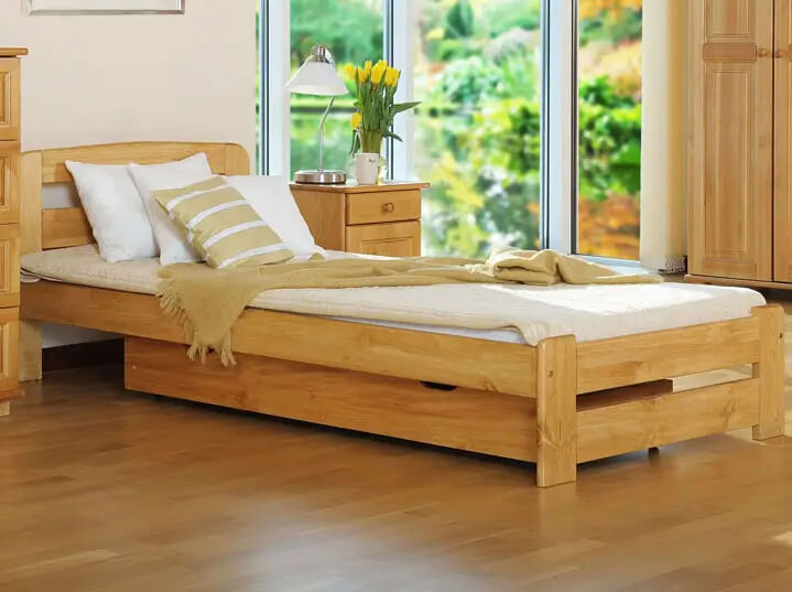 Trvanlivost a pevnost: Borovice je dřevo známé pro svou odolnost. Postel Saša poskytne stabilitu a pohodlí po mnoho let, vhodná do ložnice dospělých i dětí.