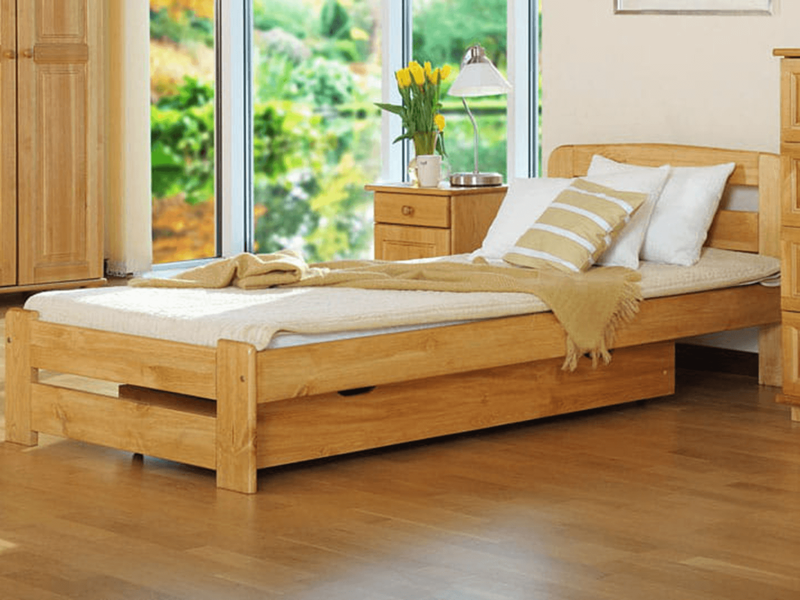 Přirozená krása: Postel Saša je vyrobena z masivního borovicového dřeva, které přináší teplo a útulnost do každé ložnice. Borovice má jedinečné letokruhy a přírodní odstín, který se hodí do moderního i klasického interiéru.