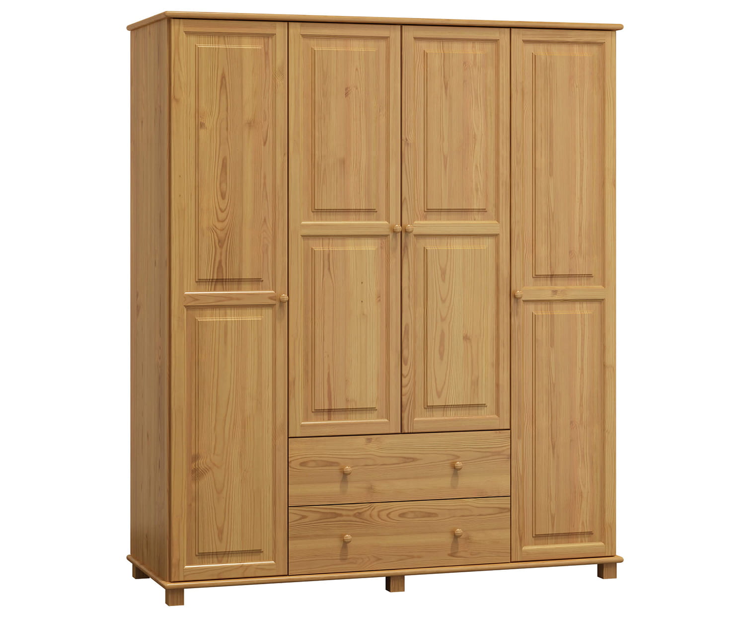 Skříň 4Dč2 šířka 160 má díky použití borovicového dřeva odolnou a stabilní konstrukci. Nábytek je vyroben z borovicového dřeva nejlepší kvality a natřen 3 vrstvami ekologického laku. Jako jedni z mála používáme při výrobě laky, které mají certifikát Státní hygienické stanice. Laky, které používáme, jsou schváleny pro použití na předmětech, s kterými přicházejí do styku děti (shoda s normou DIN EN 71, č. 3). Výrobek je dodáván v balících a je určen pro samostatnou montáž. |