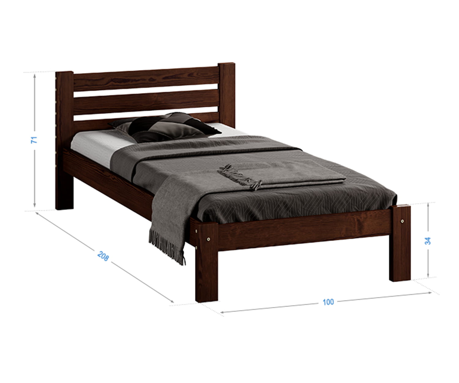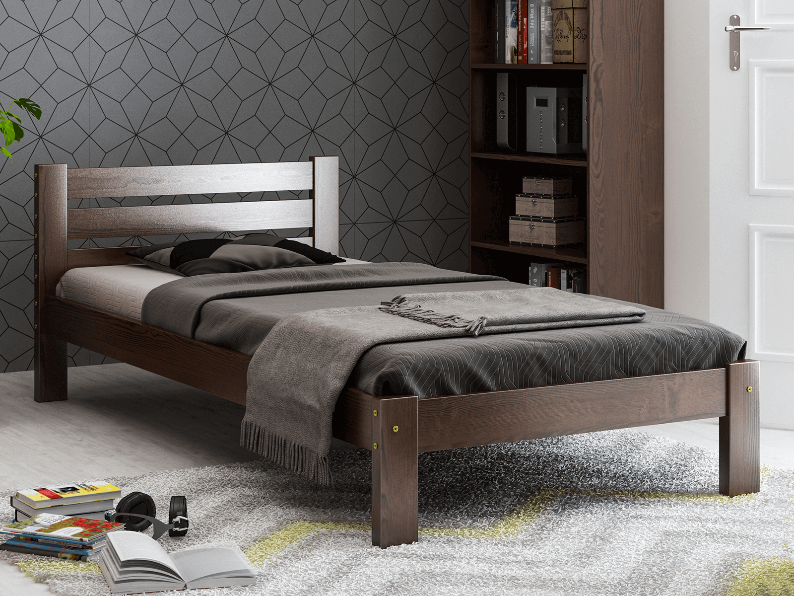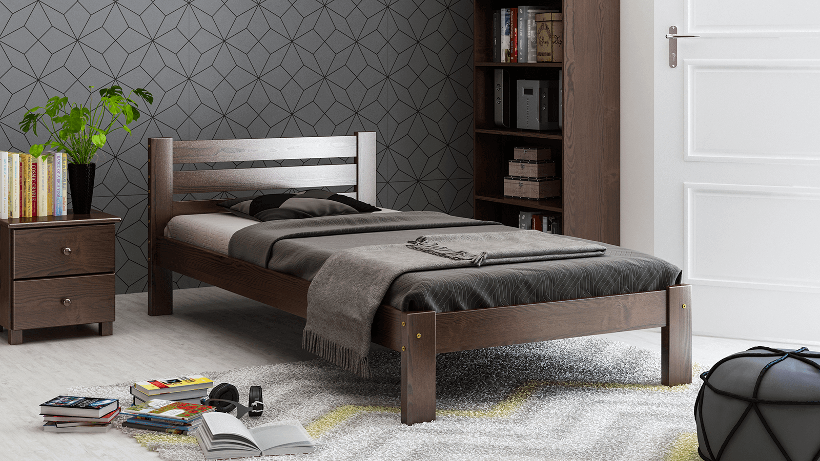 Postel z masivu 90x200 Ajza ořech s roštem