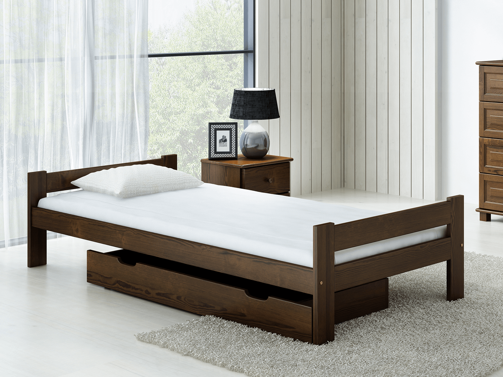 Sada obsahuje pružný rošt, vyrobený z 12 lamel z břízového dřeva spojených látkovou páskou. Tento nábytek je vyroben z borovicového dřeva nejvyšší kvality s 3 krát prováděným nátěrem ekologickými barvami. Jako jedni z mála používáme pro lakování nátěrové hmoty s atestem Národního ústavu hygieny. Naše laky mají povolení užívání na předměty, s nimiž přicházejí do kontaktu děti. (soulad s normou DIN EN 71, cz. 3).