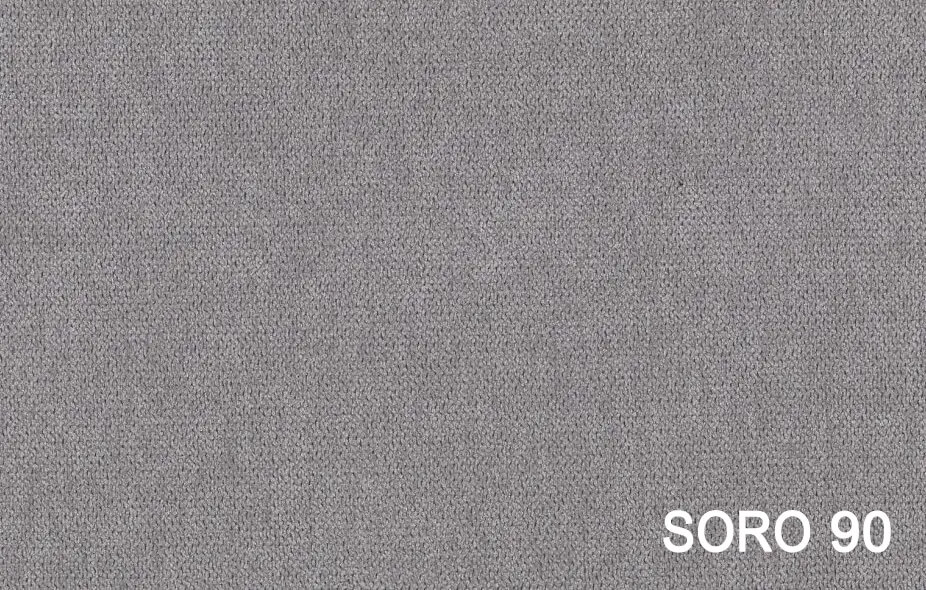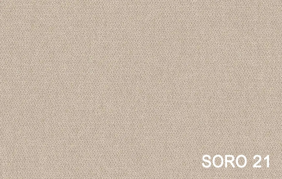SORO je jemně tkaná látka s charakteristickou strukturou SOFT TOUCH. Jeho povrch je měkký, příjemný na dotek a pružný, připomínající lehce sametový povrch. SORO je extrémně odolná potahová látka, která si zachovává svou odolnost bez použití jakýchkoli laminátů nebo jiných materiálů.