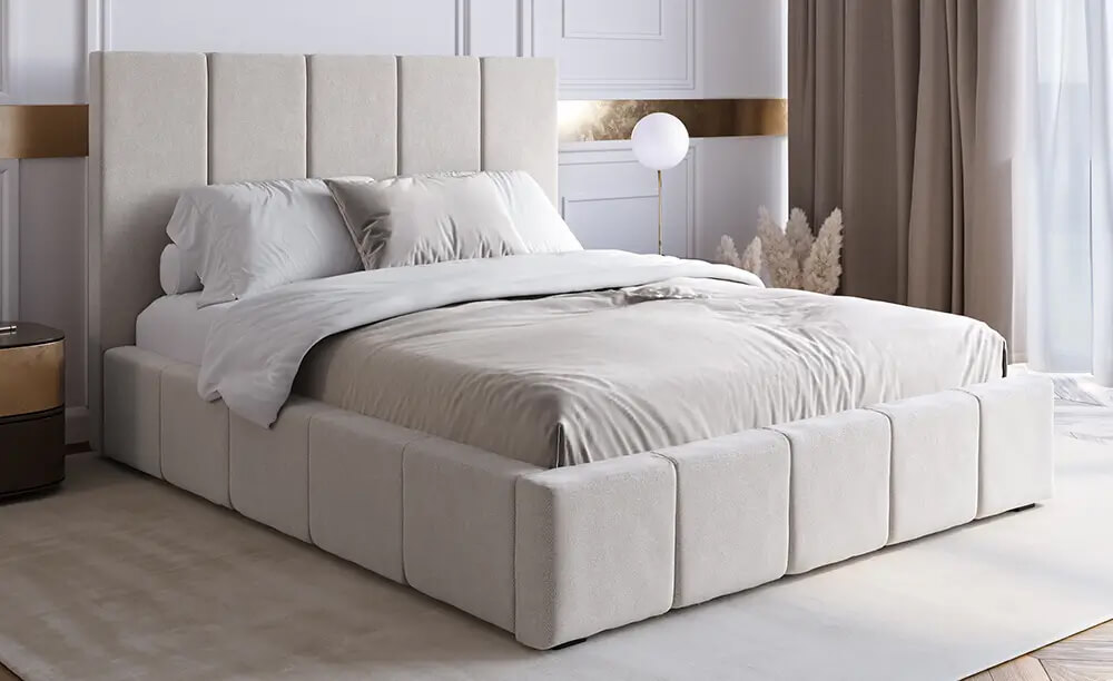 Vertikální prošívání dodává posteli jedinečný charakter a vytváří tak poutavý kus nábytku, který vynikne v každém aranžmá.