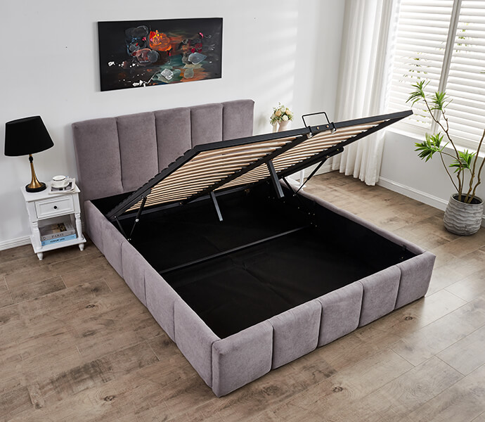 Díky vestavěnému rámu na plynových zvedácích 80N s kontejnerem na lůžkoviny je udržování pořádku v ložnici snadné a efektivní.