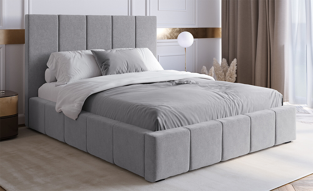 Vertikální prošívání dodává posteli jedinečný charakter a vytváří tak poutavý kus nábytku, který vynikne v každém aranžmá.