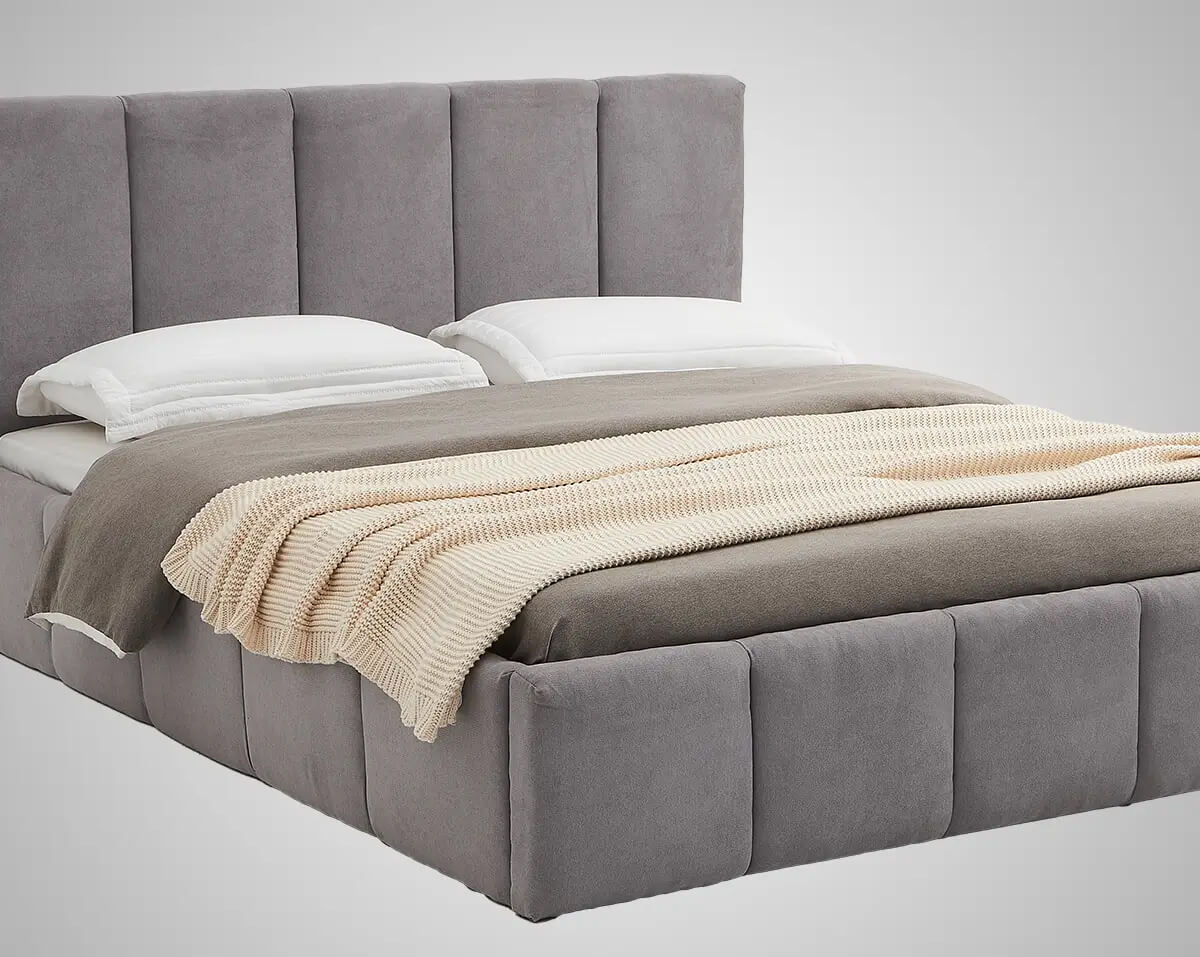 Manželská postel Pro Line 18 o rozměrech 160x200 je nejen místem na spaní, ale také středem pozornosti ve vaší ložnici. Šedá barva - Davis Soro č. 90, dokonale se hodí k modernímu dekoru. Svislé prošívání jak u čela, tak i po stranách postele jí dodává jedinečný charakter a vzhled. Jedná se o originální detail, který zdůrazňuje individualitu tohoto kusu nábytku.