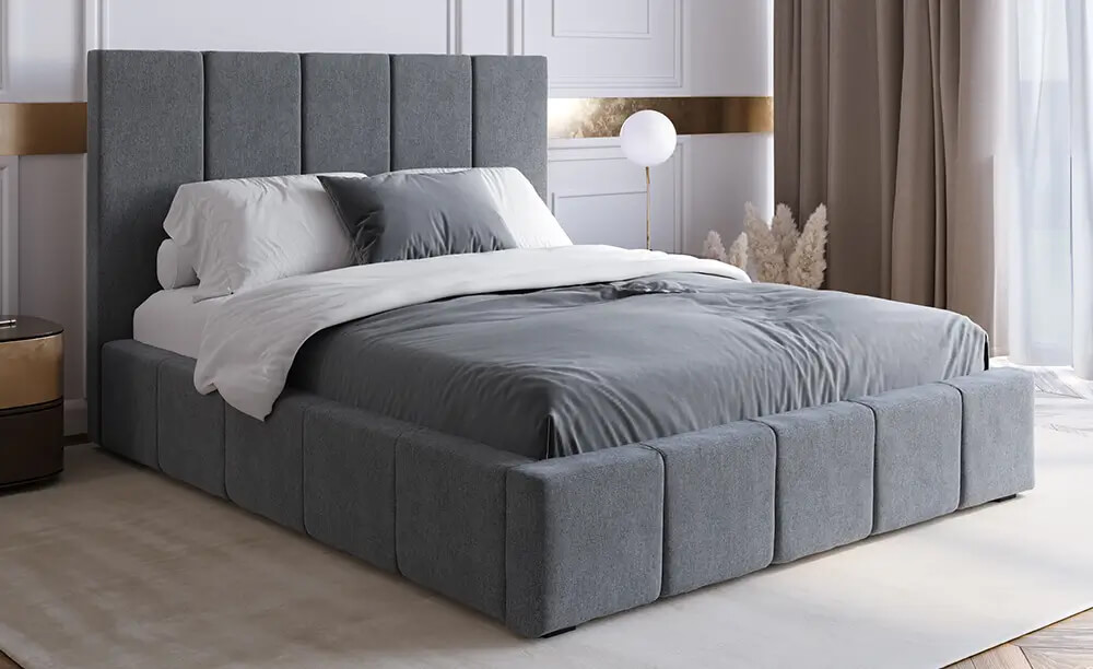 Vertikální prošívání dodává posteli jedinečný charakter a vytváří tak poutavý kus nábytku, který vynikne v každém aranžmá.