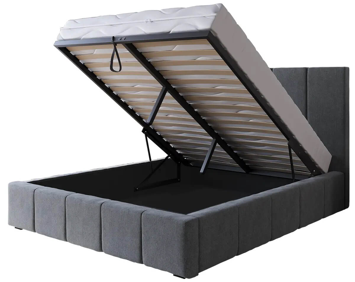 Díky vestavěnému rámu na plynových zvedácích 80N s kontejnerem na lůžkoviny je udržování pořádku v ložnici snadné a efektivní.