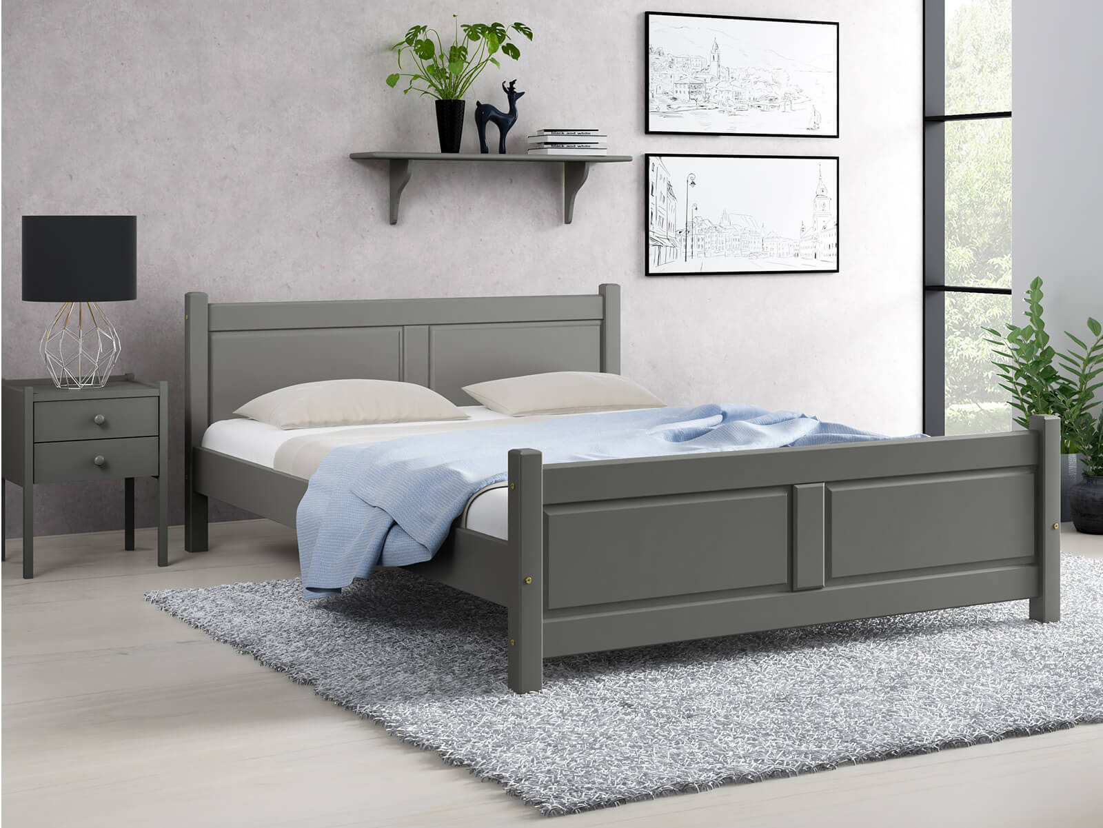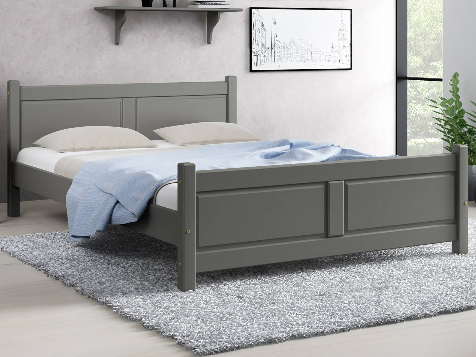 Postel z masivu 120x200 Lena Šedá s roštem
