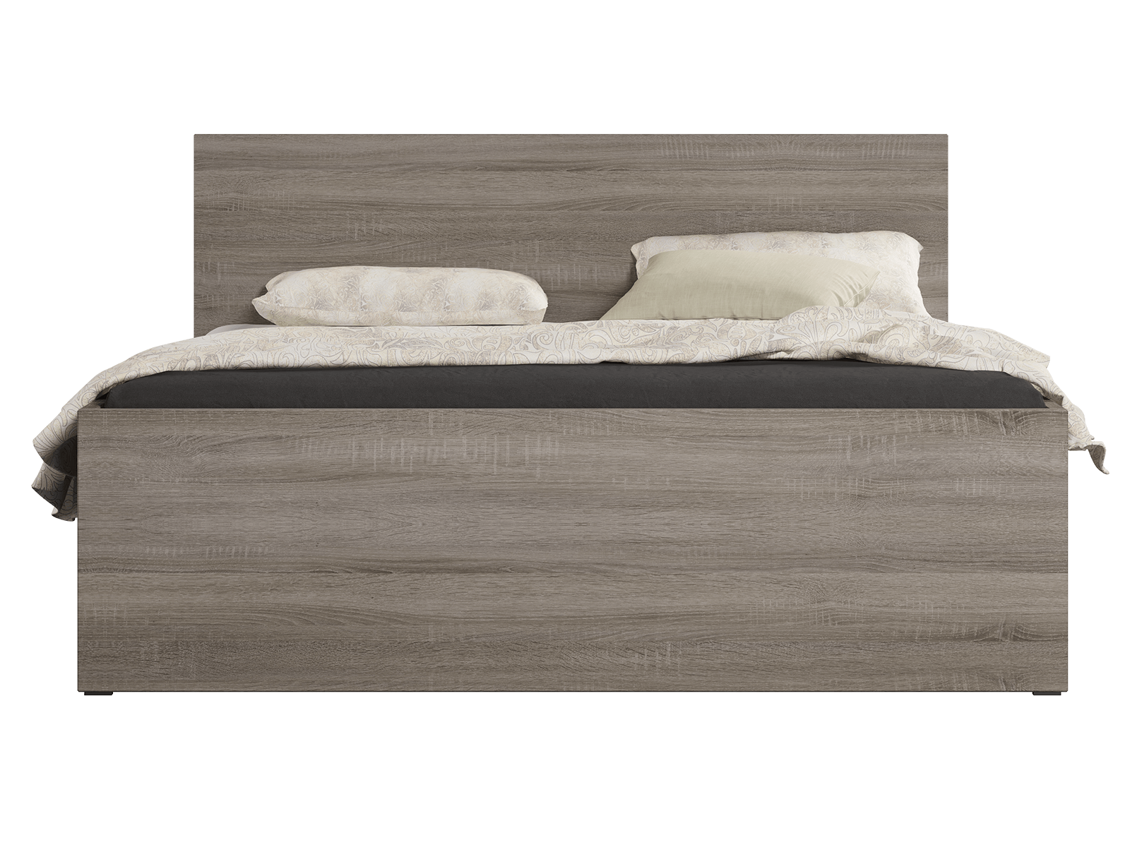 Pohodlí: Pohodlné a stabilní čelo postele poskytuje pohodlnou oporu, ideální pro čtení nebo relaxaci, zatímco její kompaktní rozměry činí postel vhodnou do místností různých velikostí.