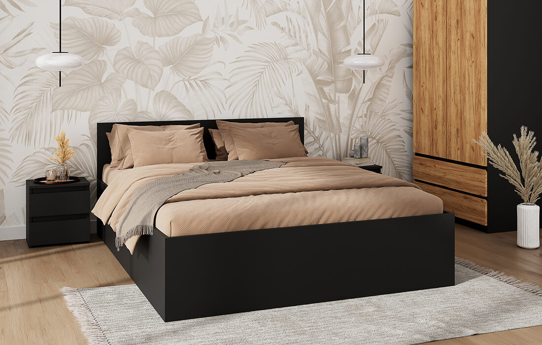 o produktuPostel DM1 v černé barvě je moderní a funkční kus nábytku vyrobený z odolné nábytkové desky, který se vyznačuje jednoduchým, minimalistickým designem. Tmavý odstín vnese do interiéru moderní a stylový charakter a skvěle ladí s různými styly zařízení. Pevná a bezpečná konstrukce a pohodlné čelo postele zajišťují komfort při používání, zatímco univerzální design umožňuje využití v ložnici, dětském nebo hostinském pokoji. Jedná se o praktické řešení pro ty, kteří oceňují kombinaci estetiky a odolnosti. Kompaktní rozměr postele je ideální i do menších prostor bez ztráty funkčnosti. Stabilita konstrukce a precizní zpracování zajišťují bezpečnost i při intenzivním používání. Povrch s dekorem dřeva je nejen estetický, ale také snadný na údržbu, což umožňuje udržet nábytek dlouhodobě v perfektním stavu. Postel DM1 představuje spojení klasické elegance s moderním přístupem ke komfortu a praktičnosti.